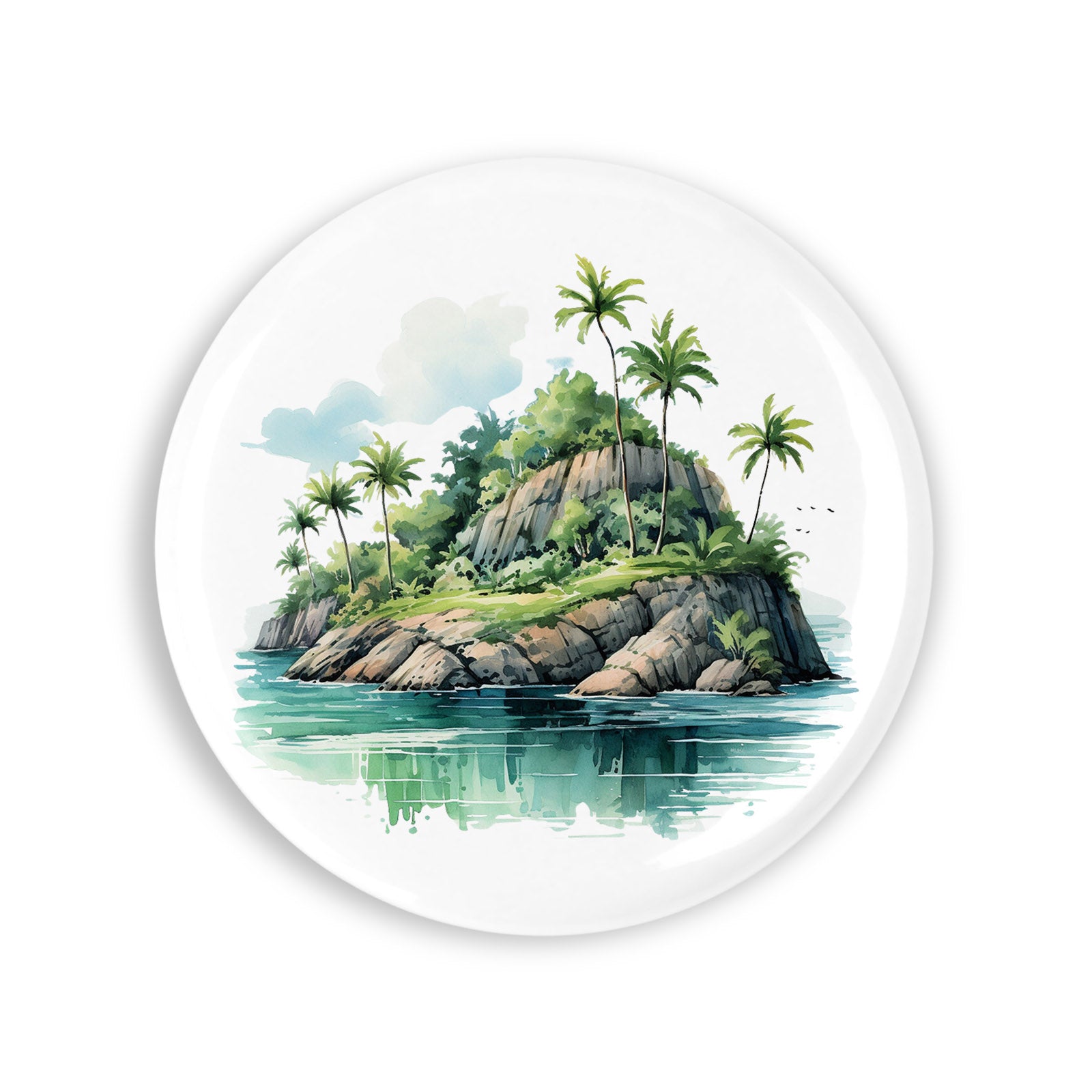 Set 4 insigne, Insula tropicala cu munti, NO5627, Metal, 44 mm, Multicolor