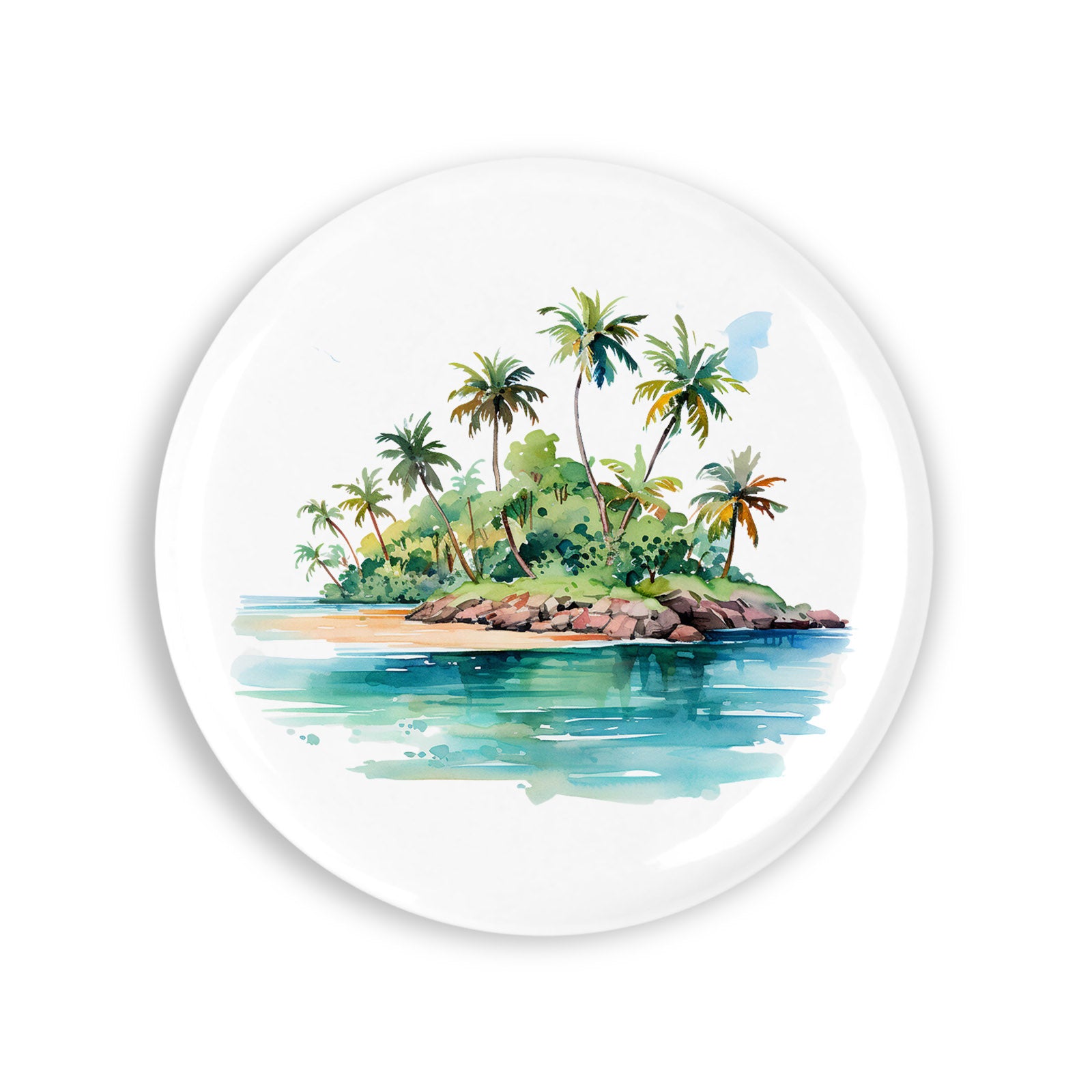 Set 4 insigne, Insula tropicala cu palmieri, NO1481, Metal, 44 mm, Multicolor