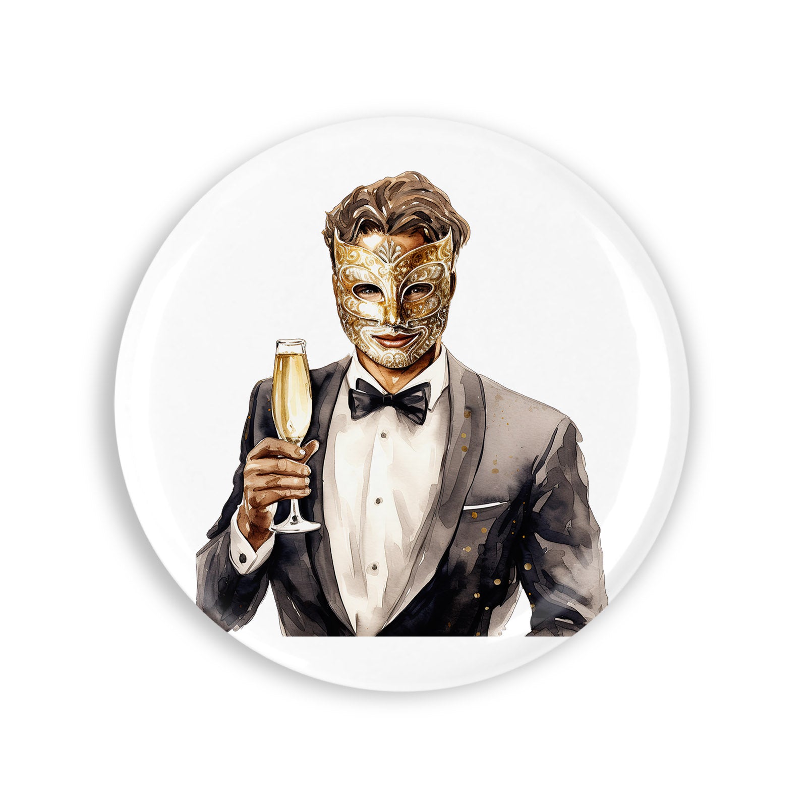 Set 4 insigne, Invitatie Revelion Clark, NO2823, Metal, 44 mm, Multicolor