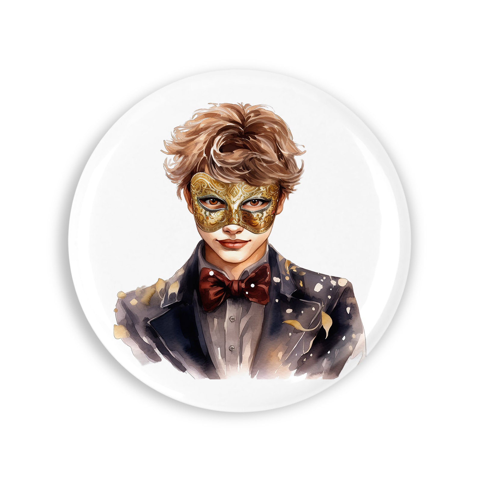 Set 4 insigne, Invitatie Revelion Denis, NO649, Metal, 44 mm, Multicolor