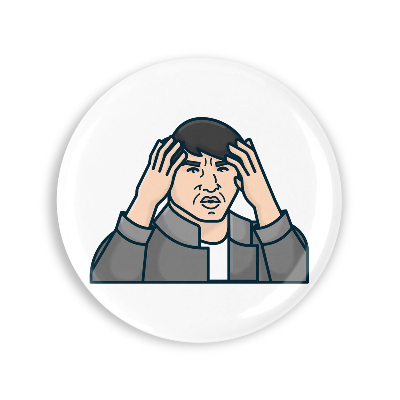 Set 4 insigne, Jackie Chan confuz Meme, NO10620, Metal, 44 mm, Multicolor