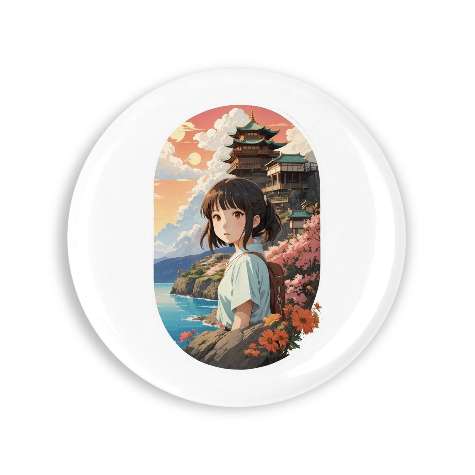 Set 4 insigne, Japoneza pe malul lacului, NO7380, Metal, 44 mm, Multicolor
