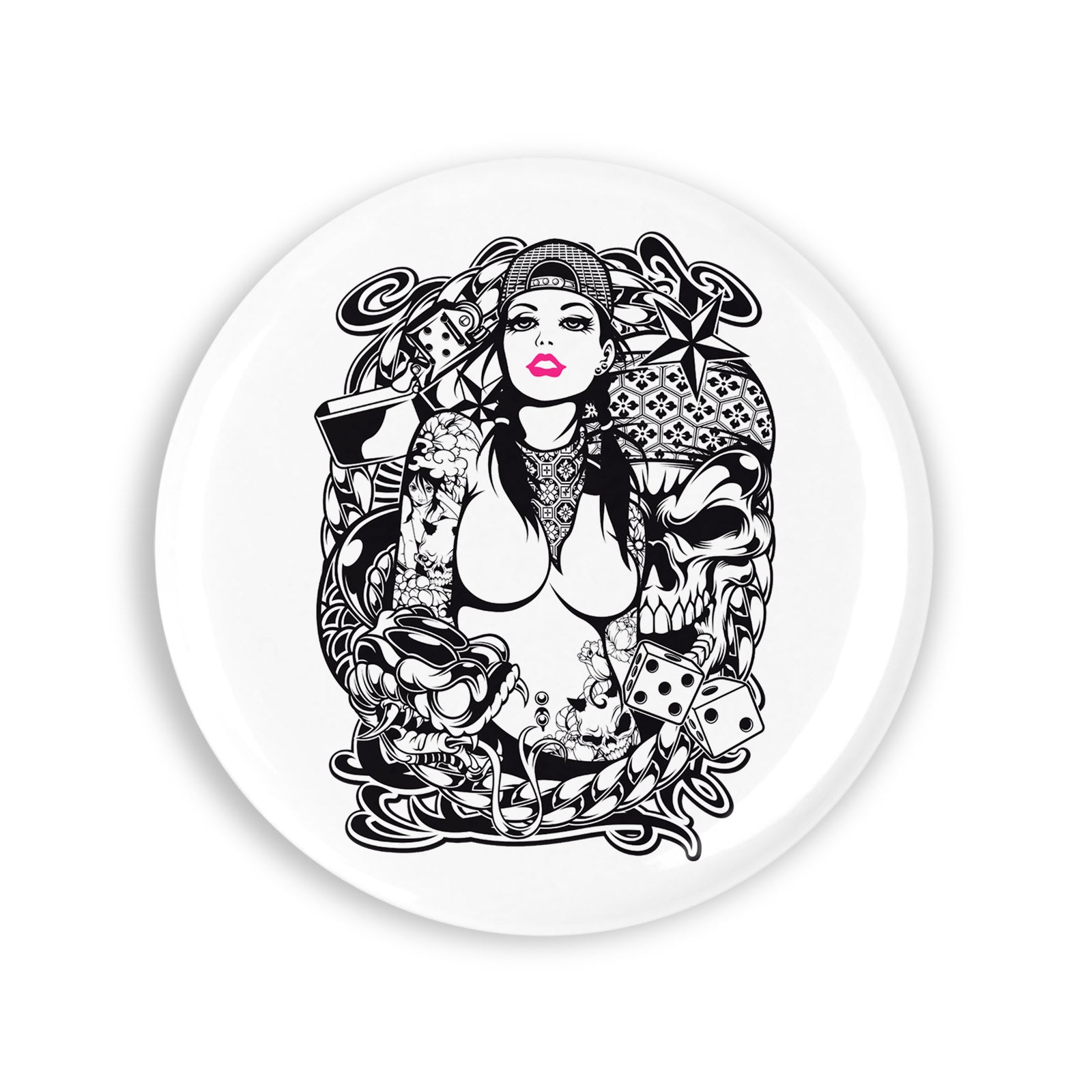 Set 4 insigne, Jocuri de noroc si femei, NO10634, Metal, 44 mm, Multicolor