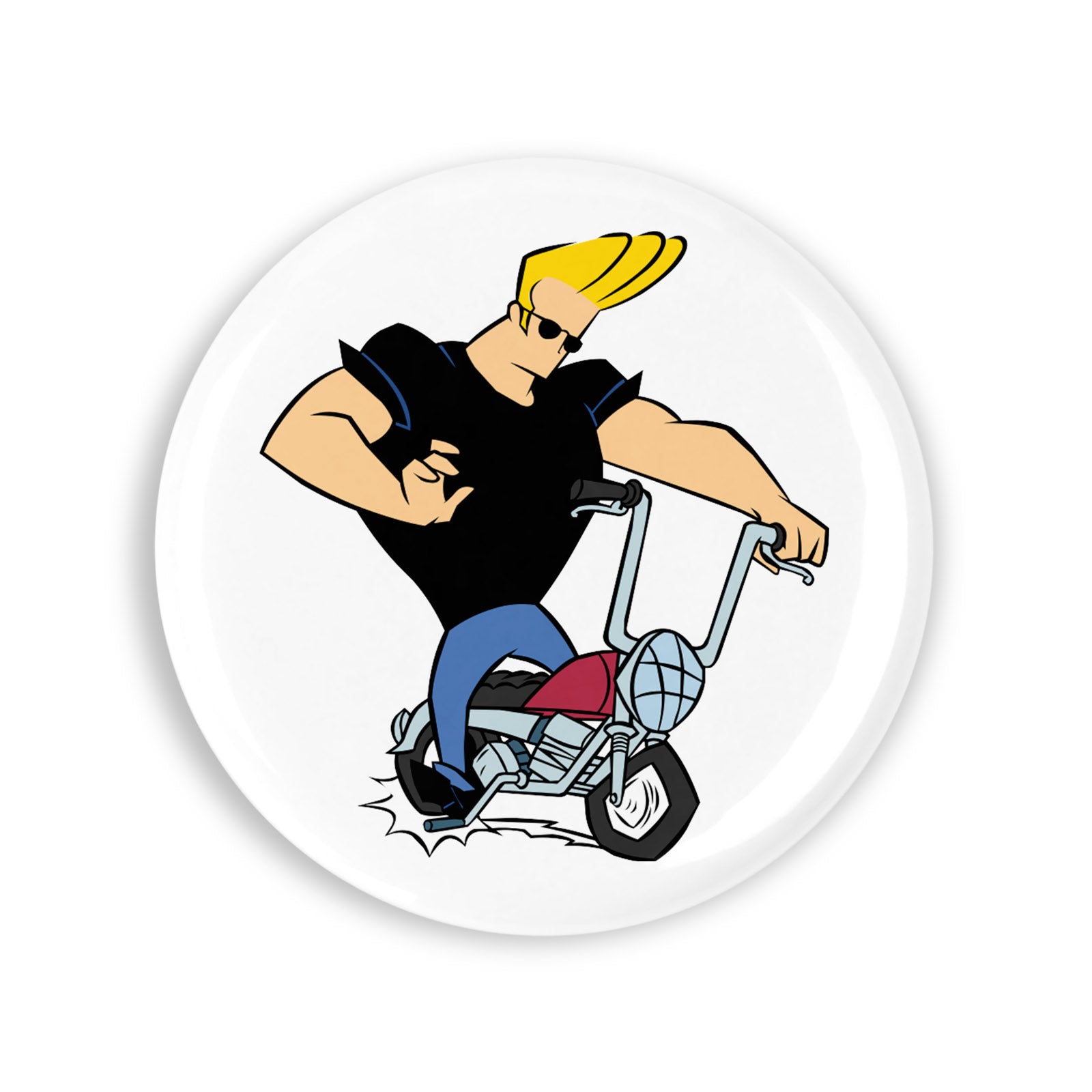 Set 4 insigne, Johnny Bravo pe bicicleta, NO10638, Metal, 44 mm, Multicolor