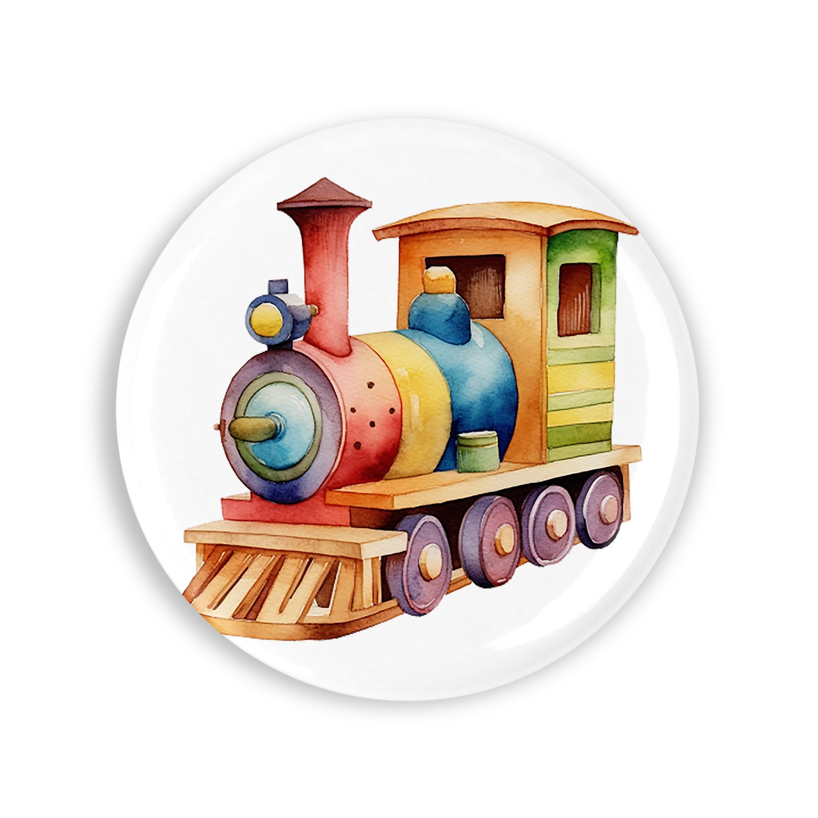 Set 4 insigne, Jucarie locomotova de lemn, NO213, Metal, 44 mm, Multicolor