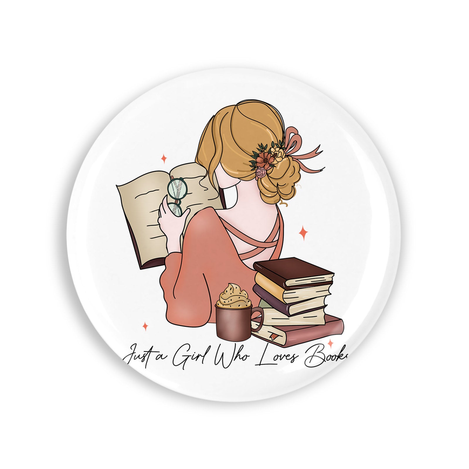 Set 4 insigne, Just A Girl Who Loves Books, NO3704, Metal, 44 mm, Multicolor