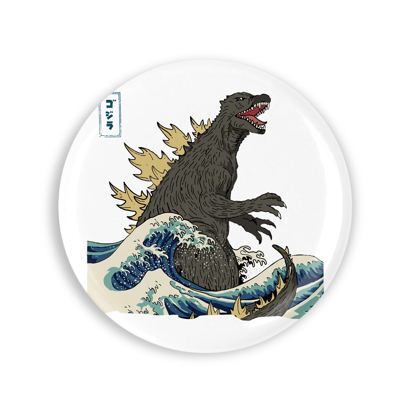 Set 4 insigne, King of the Monsters Godzilla in valuri, NO10679, Metal, 44 mm, Multicolor