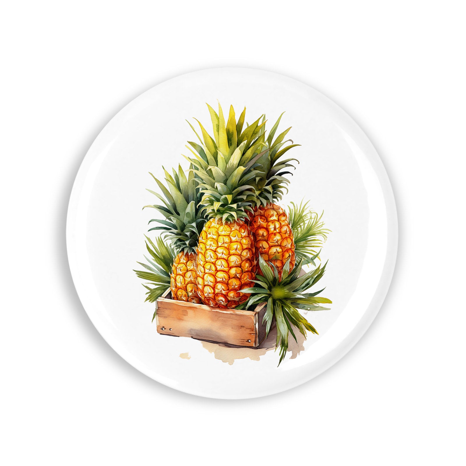 Set 4 insigne, Ladita de lemn cu ananasi, NO6429, Metal, 44 mm, Multicolor