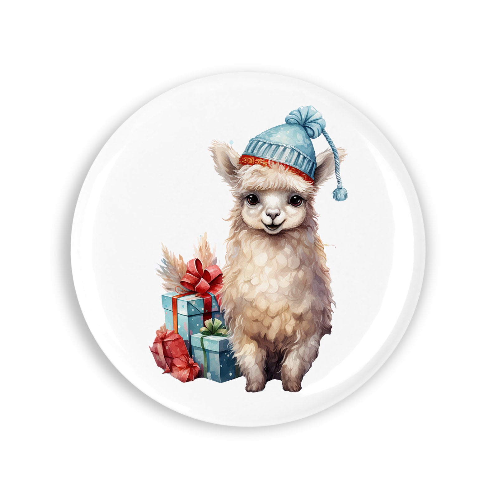 Set 4 insigne, Lama cu caciula albastra, NO970, Metal, 44 mm, Multicolor