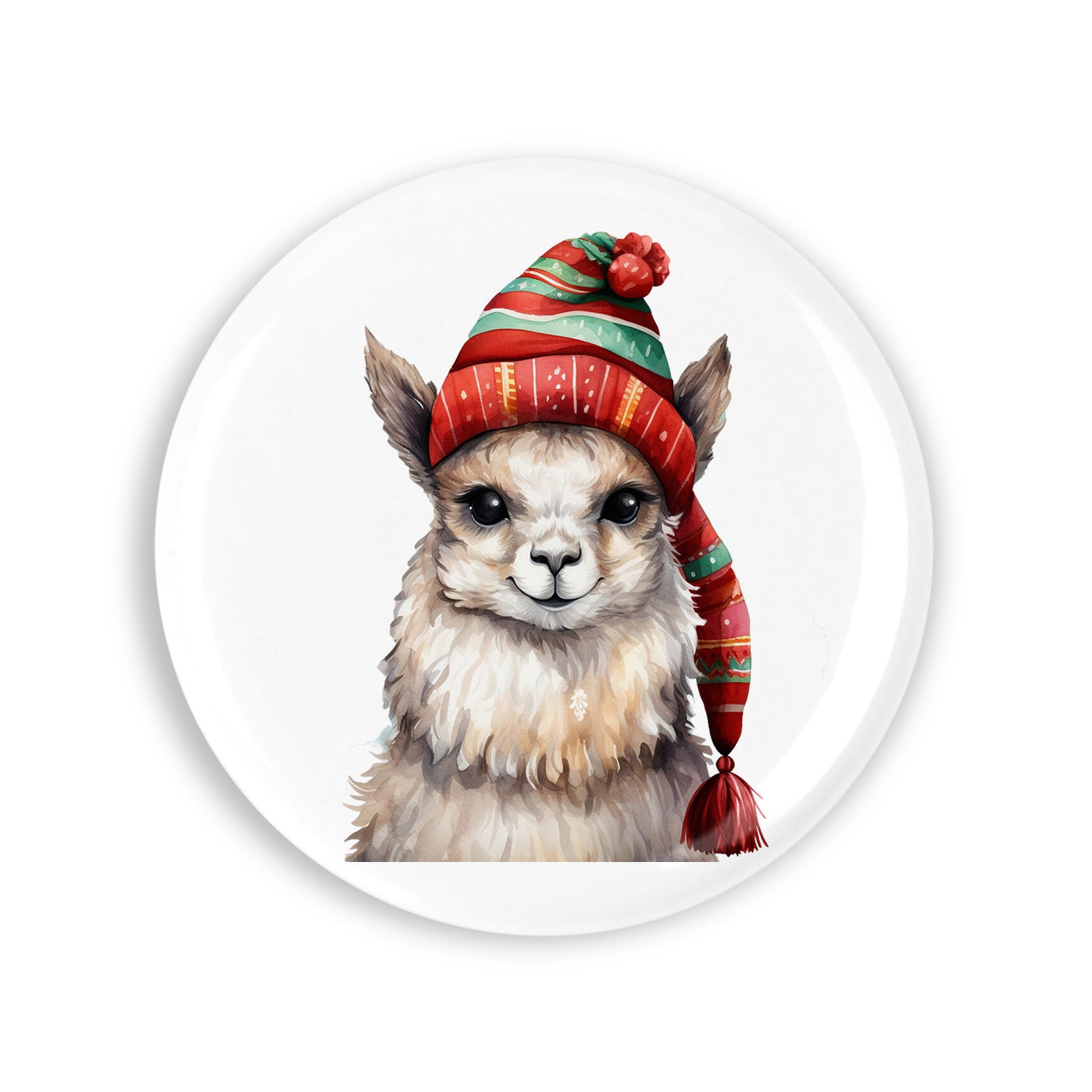 Set 4 insigne, Lama cu caciula rosu cu verde, NO5102, Metal, 44 mm, Multicolor