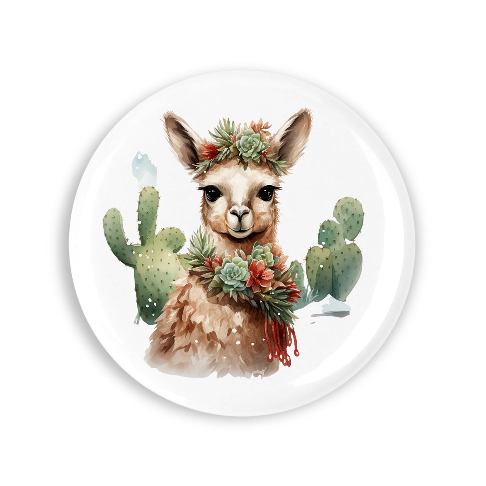 Set 4 insigne, Lama cu cactusi in par, NO1192, Metal, 44 mm, Multicolor