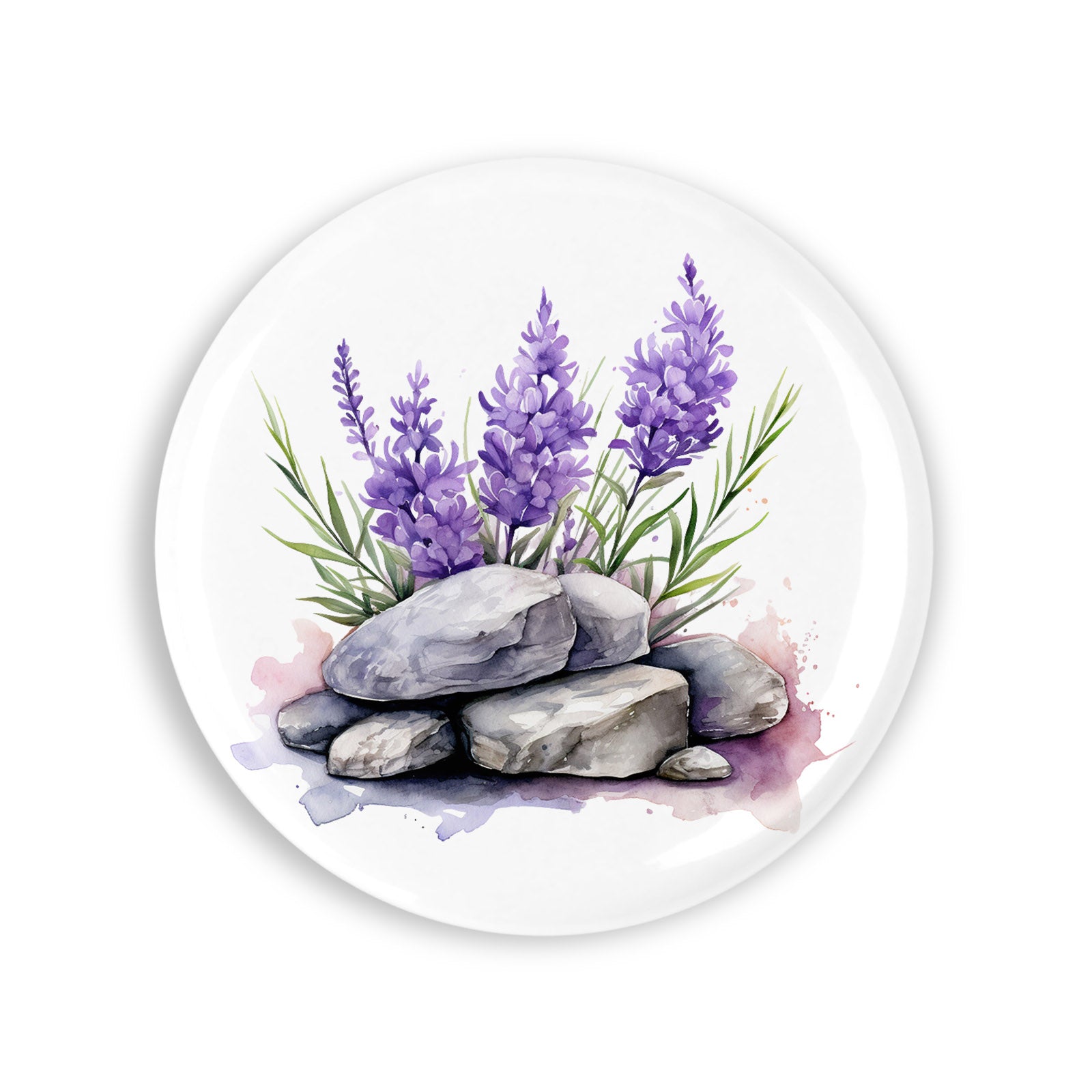 Set 4 insigne, Lavanda si pietre, NO3981, Metal, 44 mm, Multicolor
