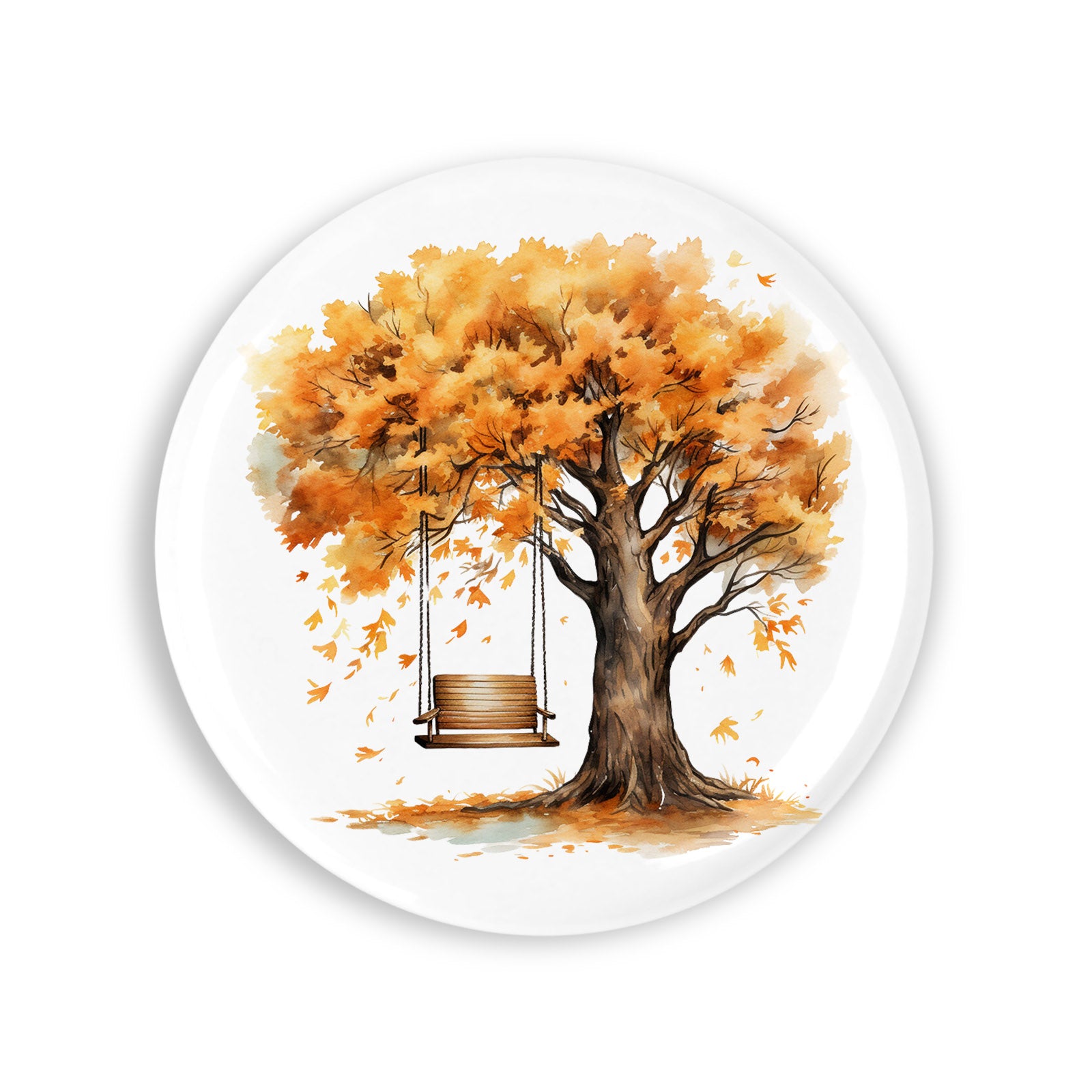 Set 4 insigne, Leagan in copac cu frunzele cazand, NO5990, Metal, 44 mm, Multicolor