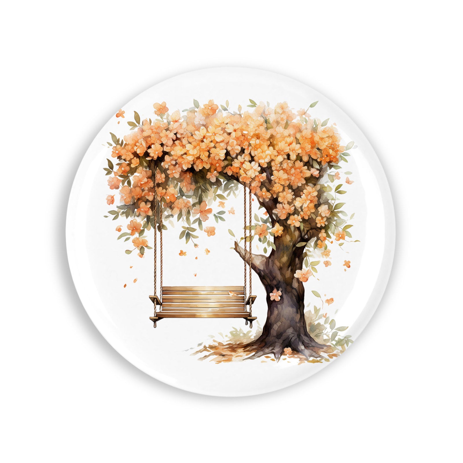 Set 4 insigne, Leagan in copacul cu flori portocalii, NO1621, Metal, 44 mm, Multicolor