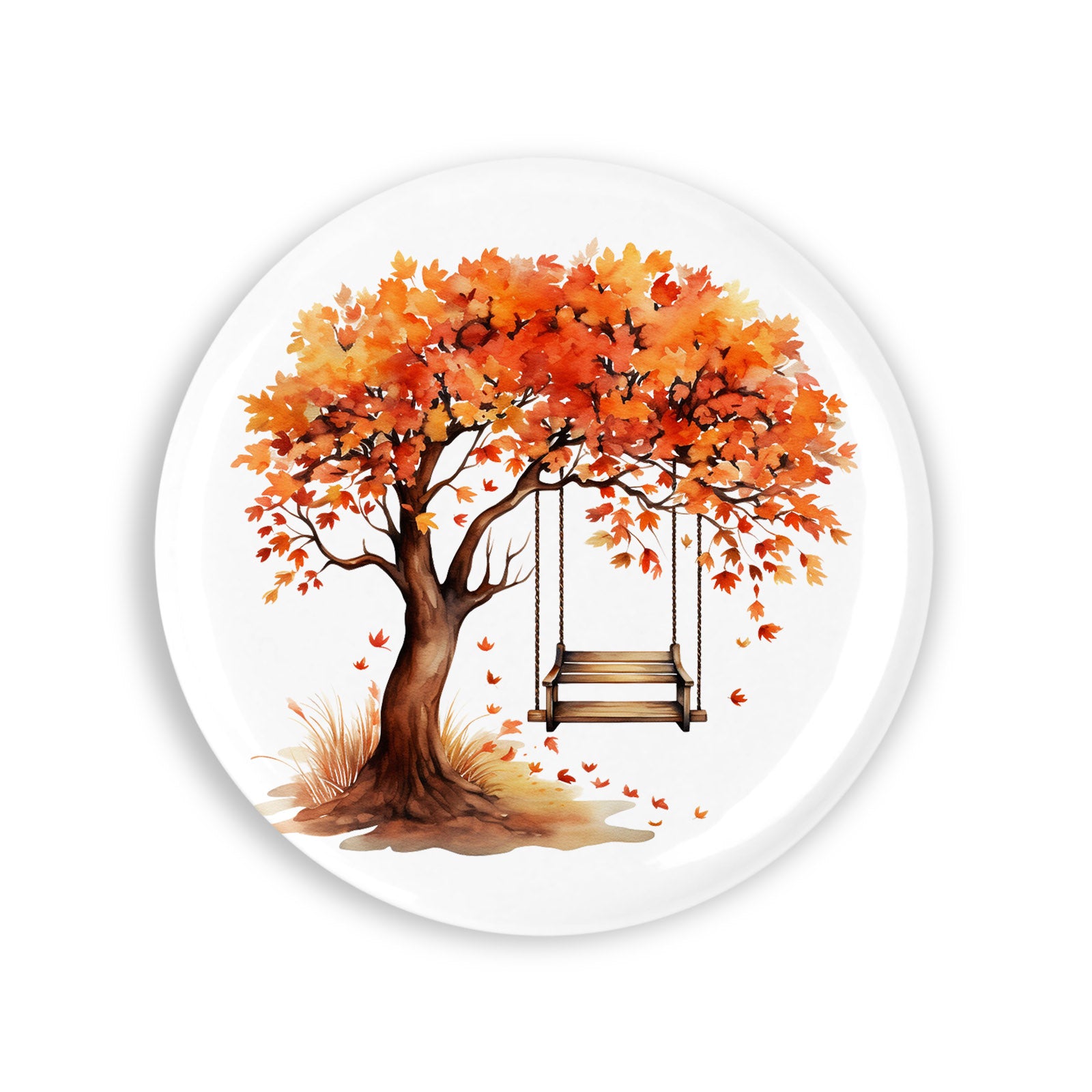 Set 4 insigne, Leagan in copacul cu frunze portocalii, NO4336, Metal, 44 mm, Multicolor