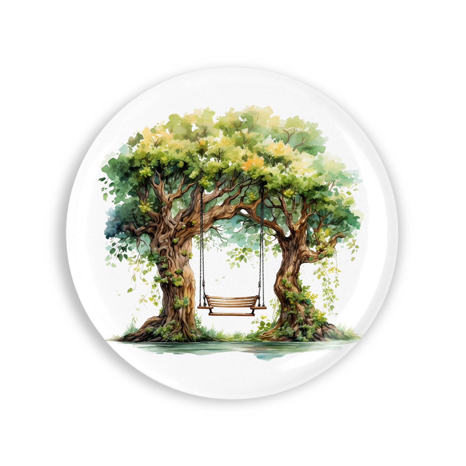 Set 4 insigne, Leagan intre doi copaci verzi, NO4492, Metal, 44 mm, Multicolor