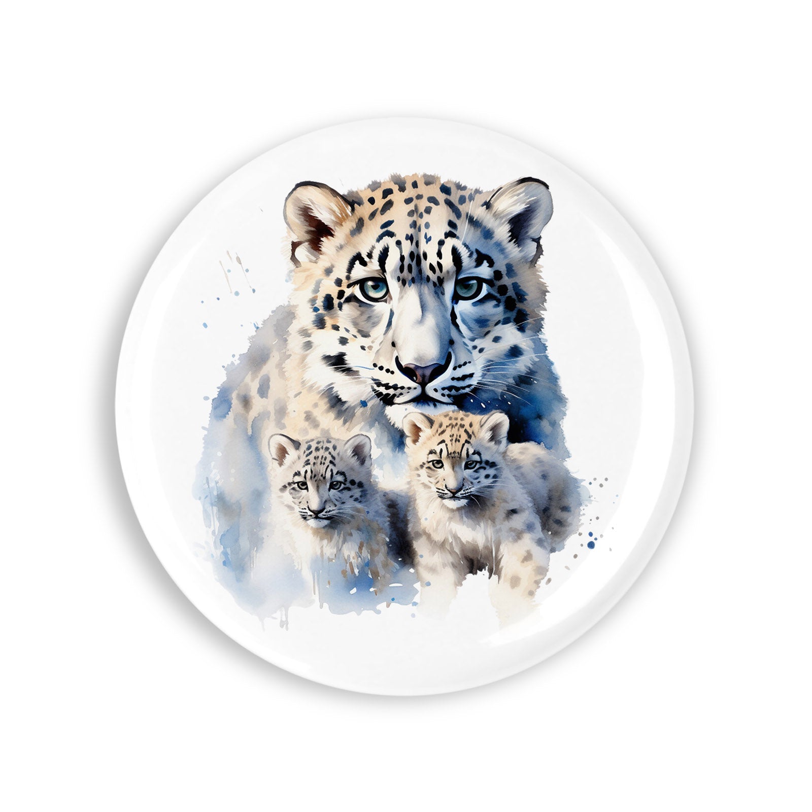 Set 4 insigne, Leopard cu doi pui, NO4796, Metal, 44 mm, Multicolor