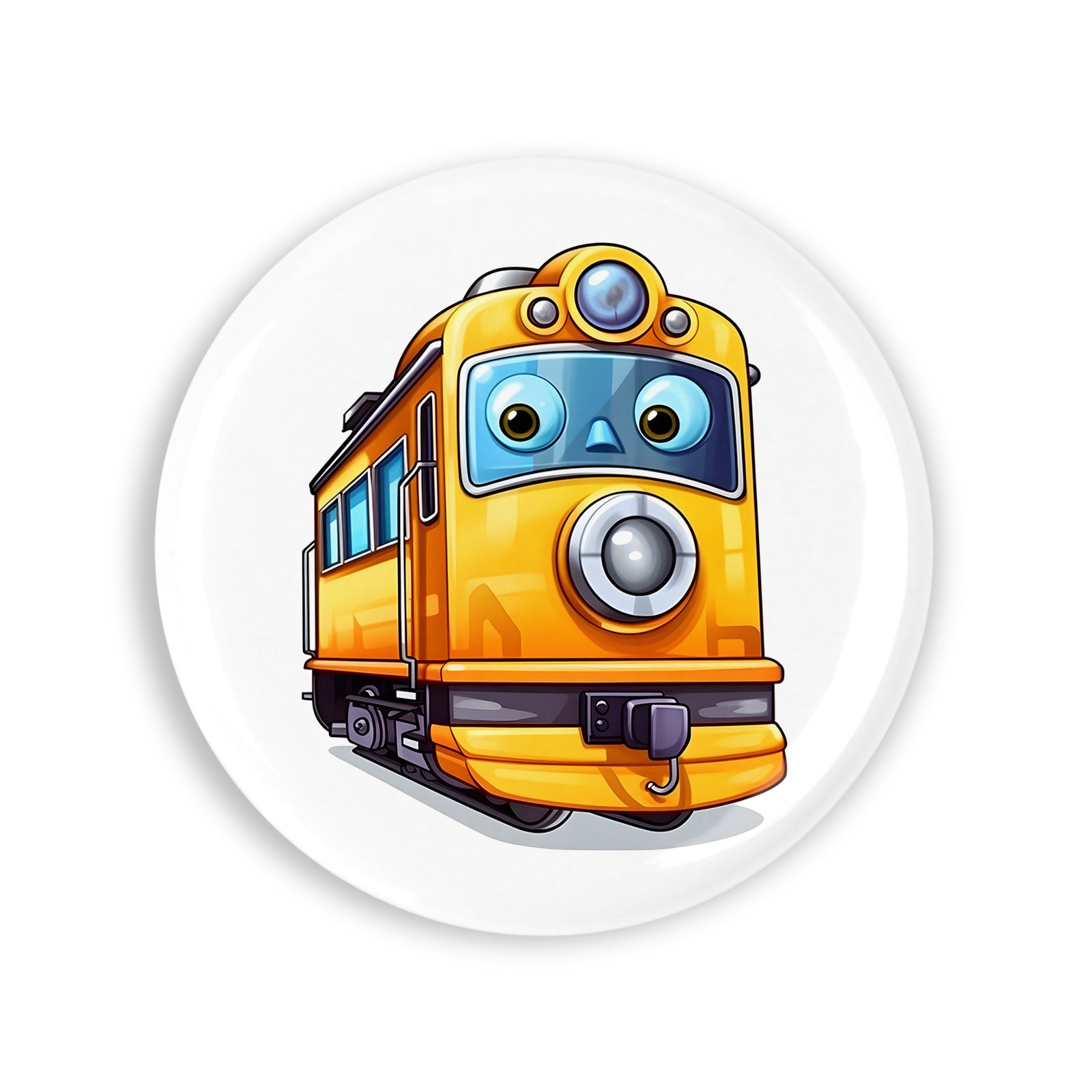 Set 4 insigne, Locomotiva galbena cu ochi, NO4940, Metal, 44 mm, Multicolor