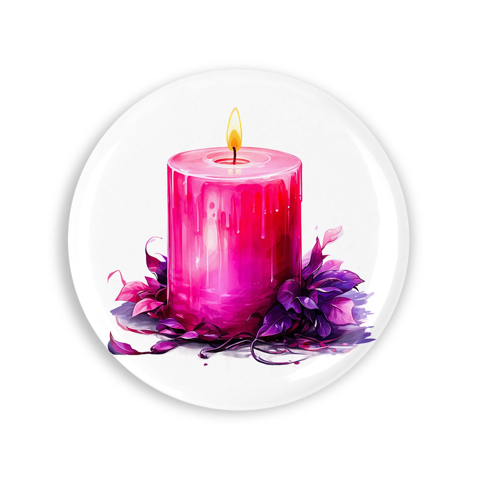 Set 4 insigne, Lumanare roz cu flori, NO4094, Metal, 44 mm, Multicolor