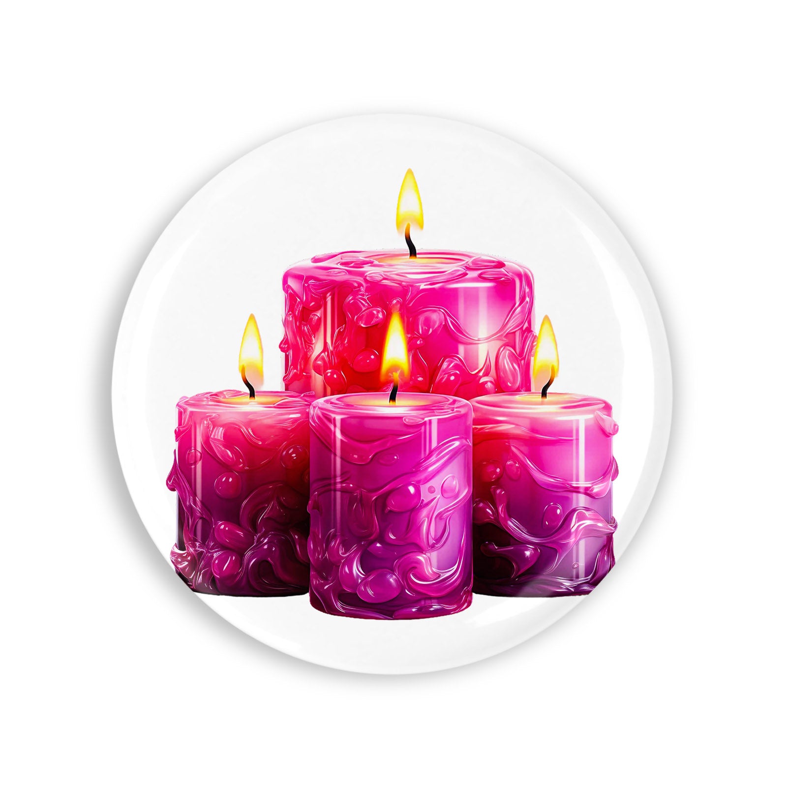 Set 4 insigne, Lumanari roz Leia, NO4623, Metal, 44 mm, Multicolor