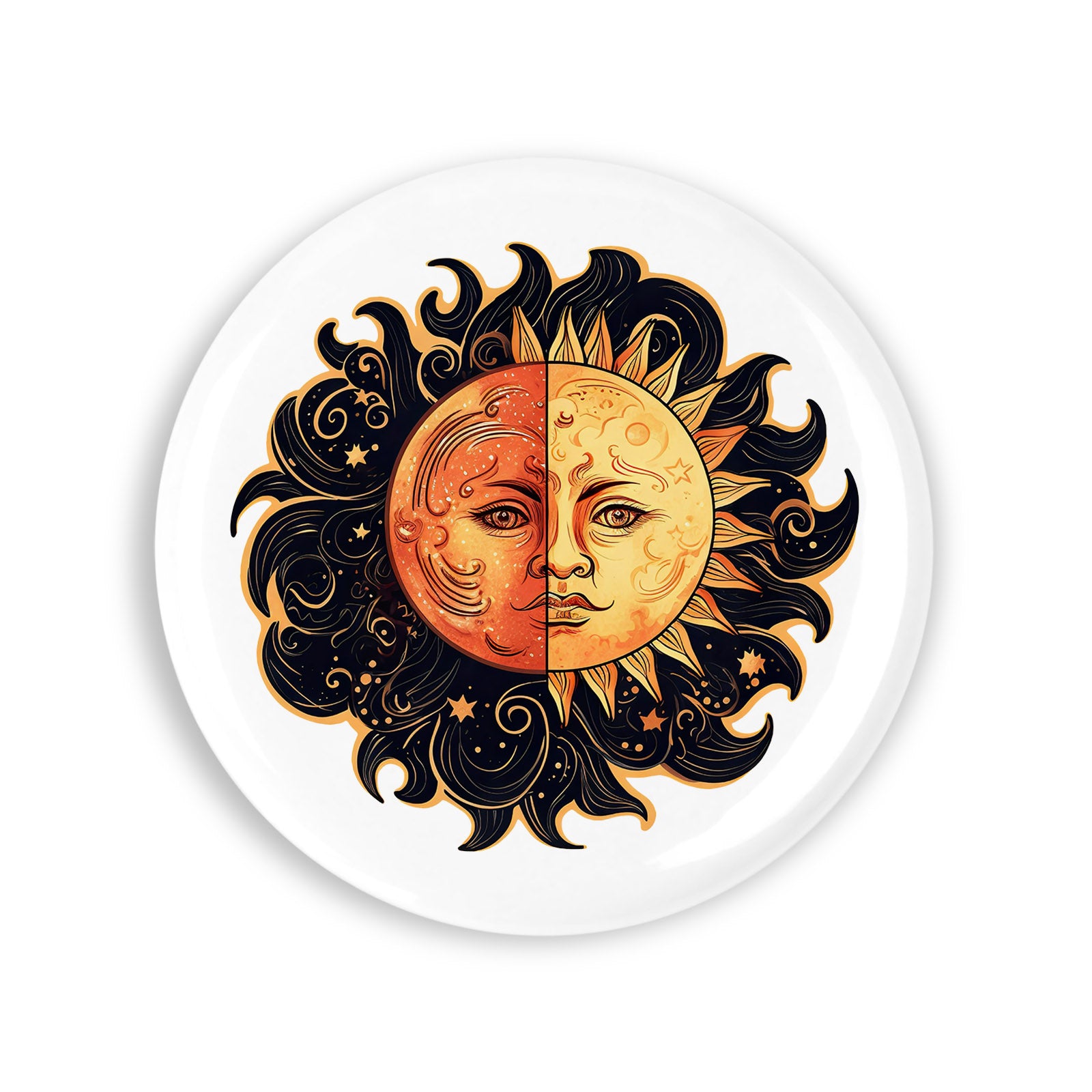 Set 4 insigne, Luna si soarele contopirea, NO1974, Metal, 44 mm, Multicolor