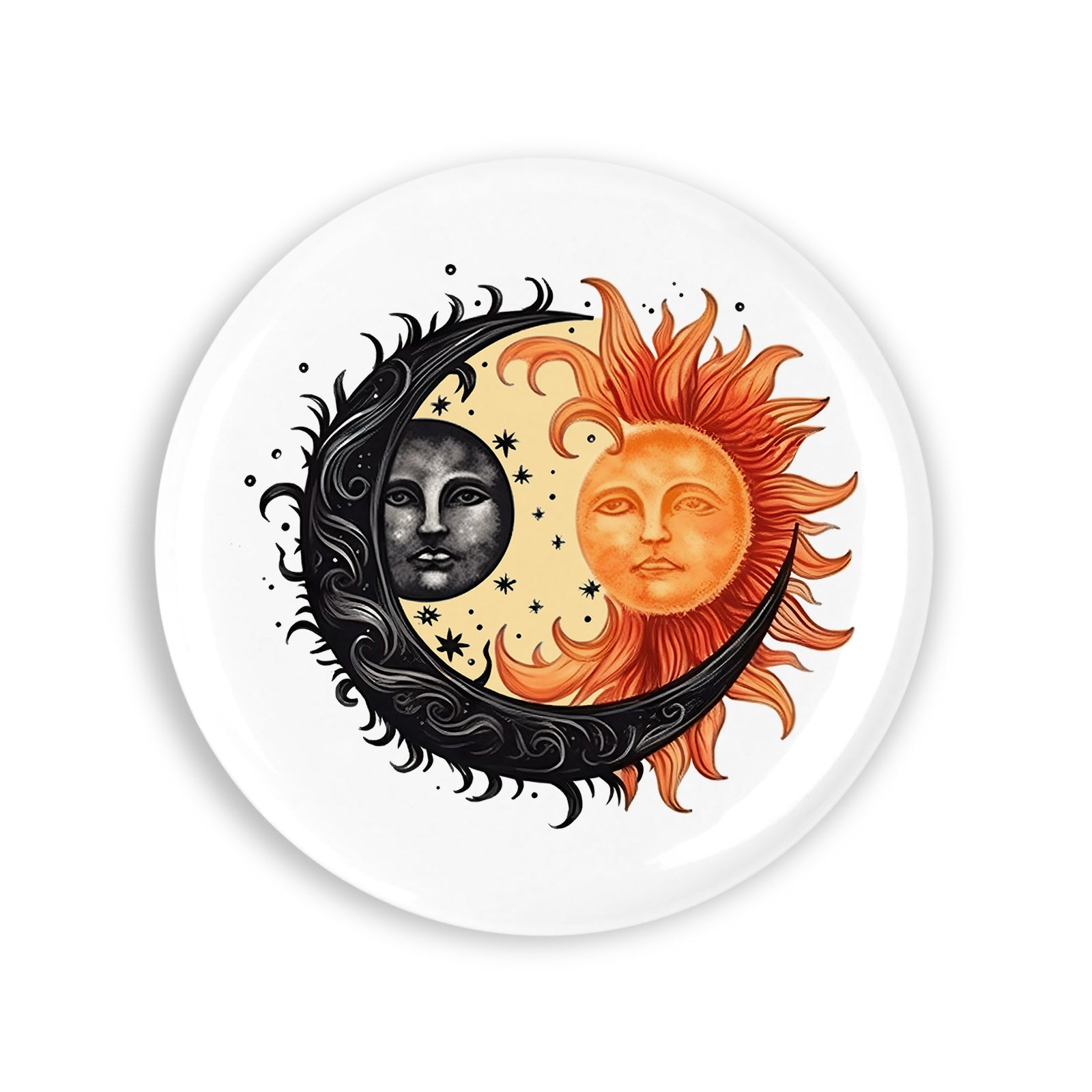 Set 4 insigne, Luna si soarele divergente, NO728, Metal, 44 mm, Multicolor