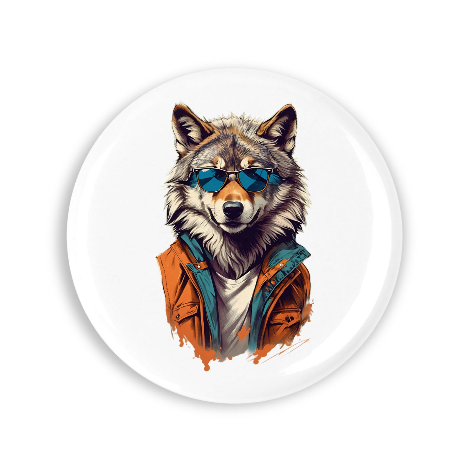 Set 4 insigne, Lup cu jacheta si ochelari, NO7153, Metal, 44 mm, Multicolor