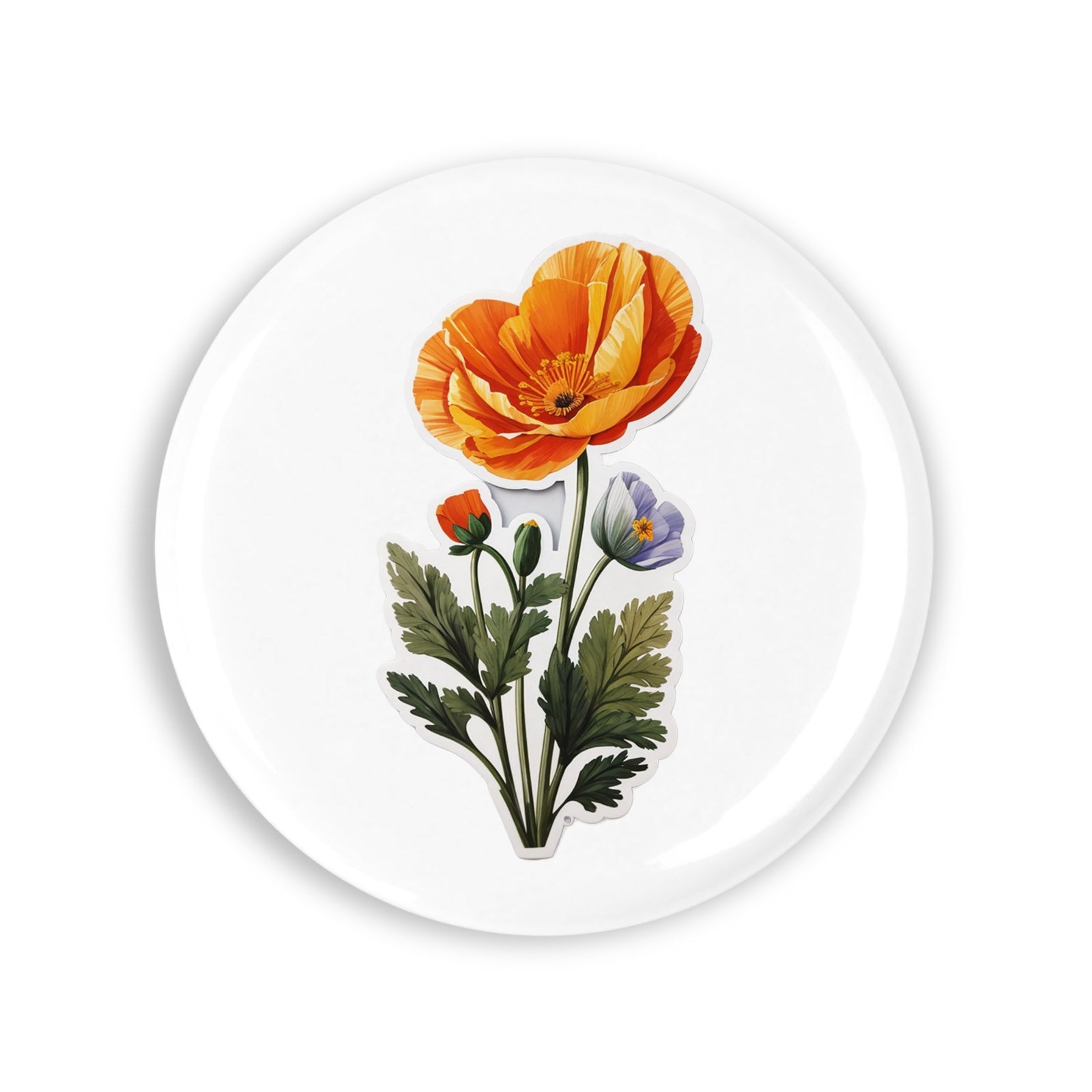 Set 4 insigne, Mac californian cu frunze si boboci, NO7911, Metal, 44 mm, Multicolor