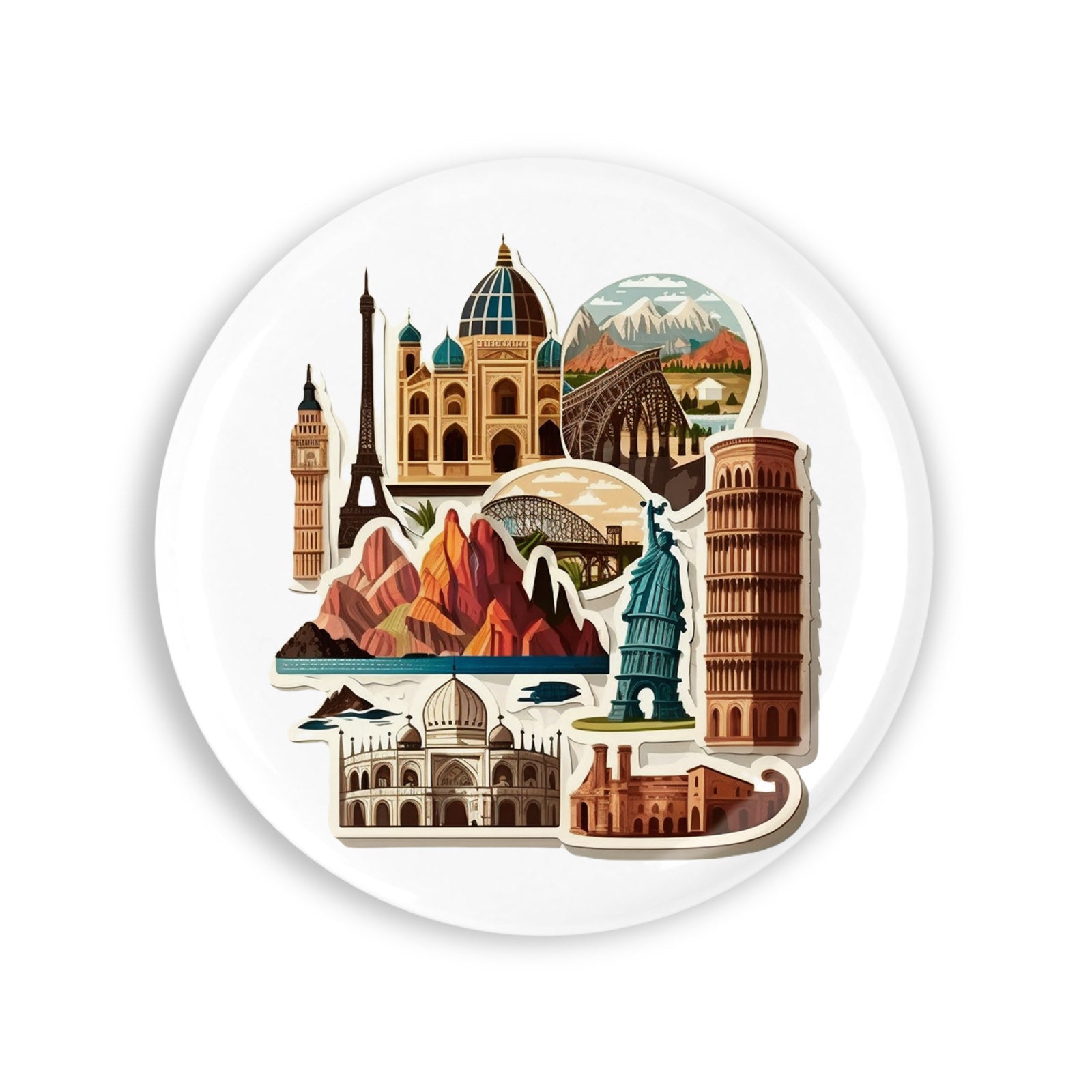 Set 4 insigne, Magneti de calatorie cu simboluri de orase, NO10788, Metal, 44 mm, Multicolor