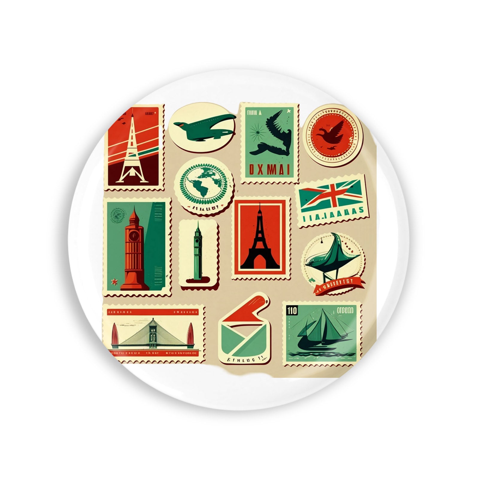 Set 4 insigne, Magneti de frigider cu timbre, NO10789, Metal, 44 mm, Multicolor