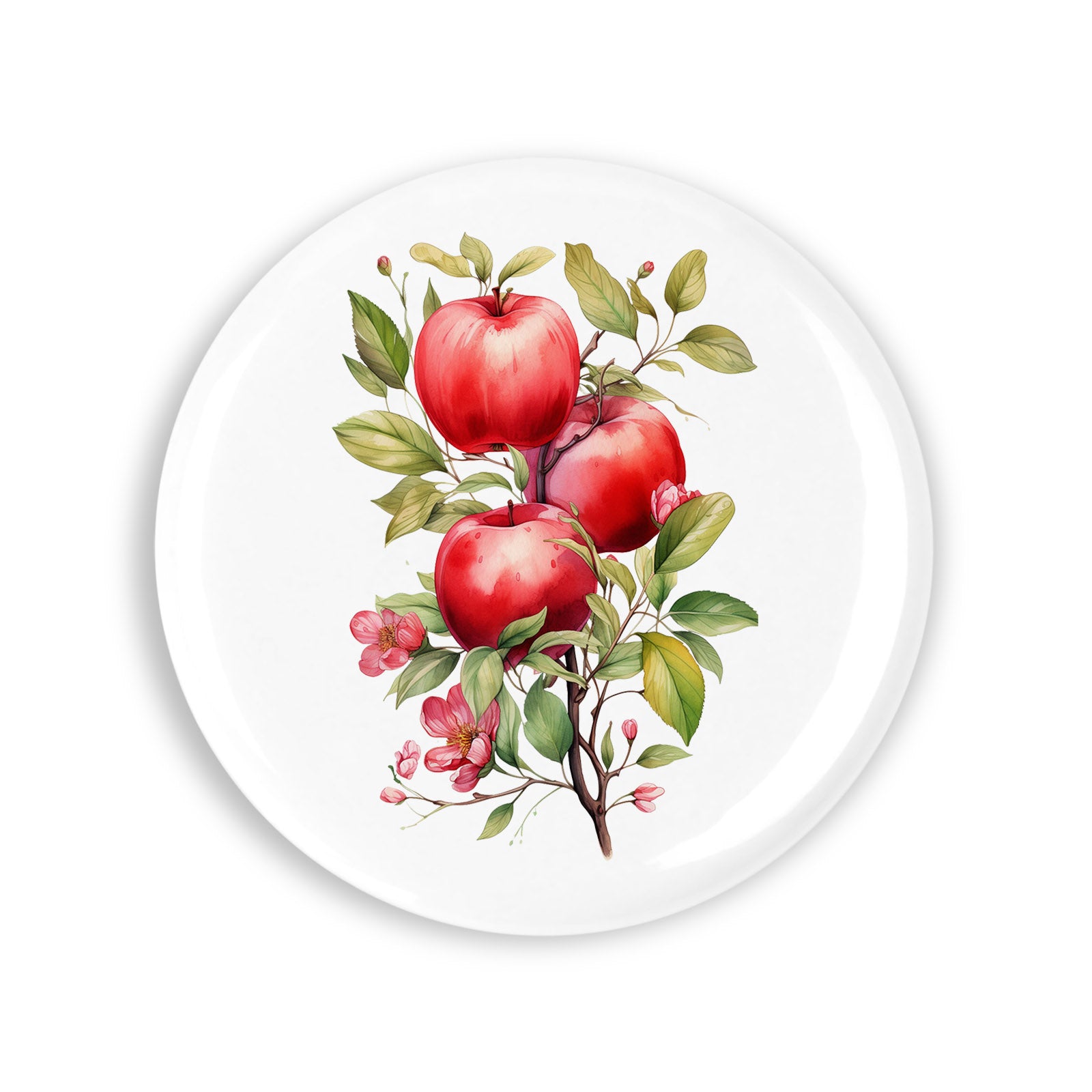 Set 4 insigne, Mar inflorit cu mere rosii, NO2452, Metal, 44 mm, Multicolor