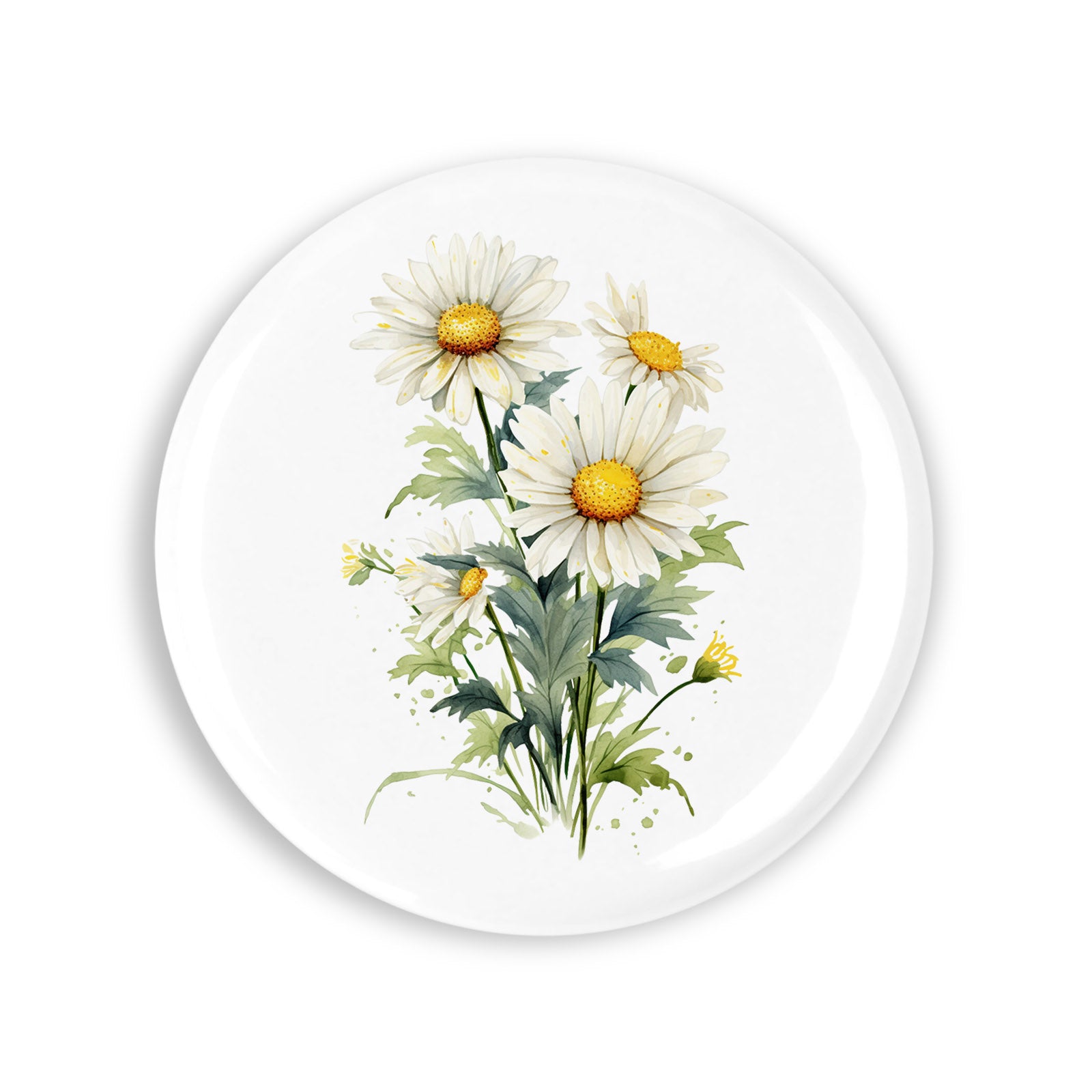 Set 4 insigne, Margarete albe, NO6516, Metal, 44 mm, Multicolor