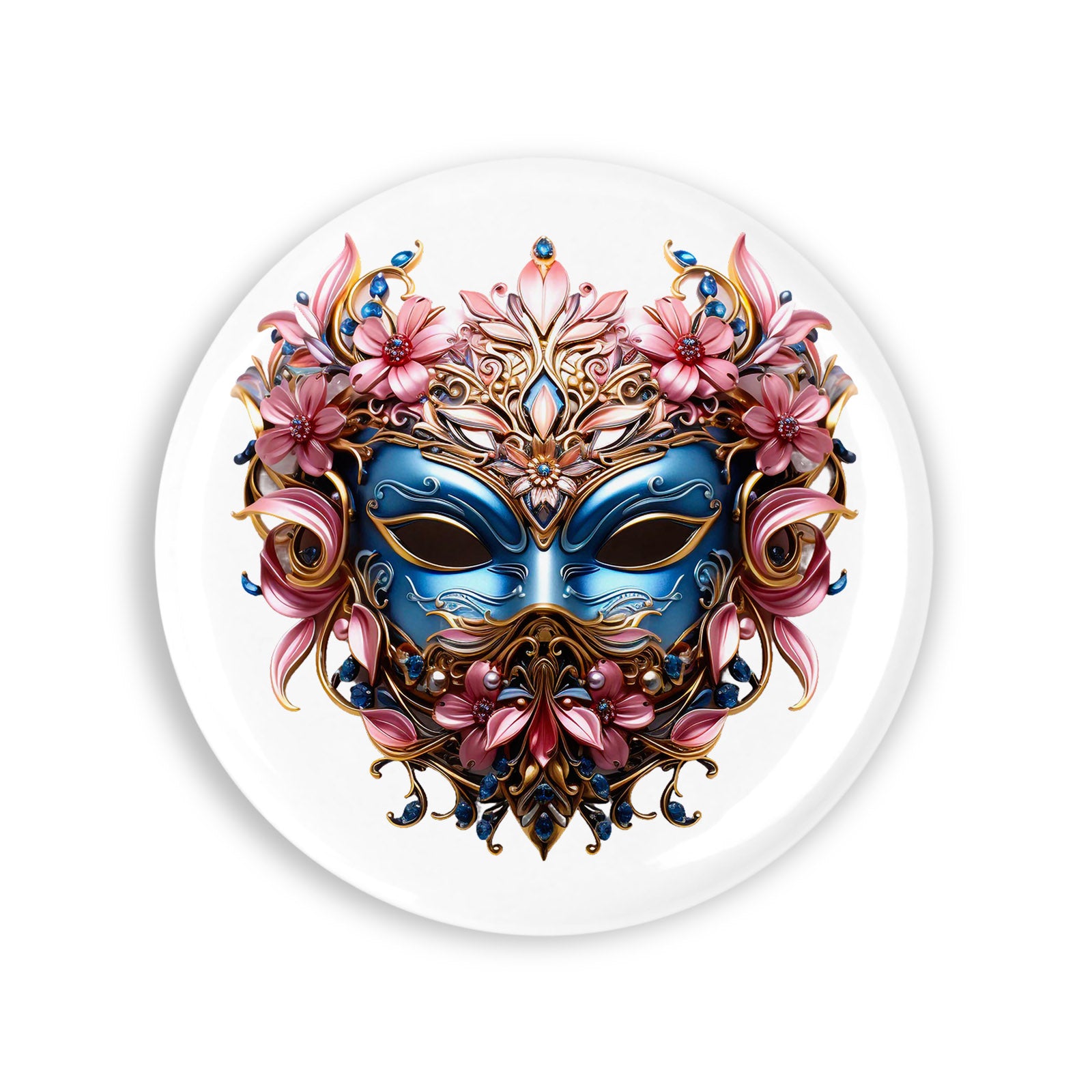 Set 4 insigne, Masca albastra cu flori roz, NO6358, Metal, 44 mm, Multicolor