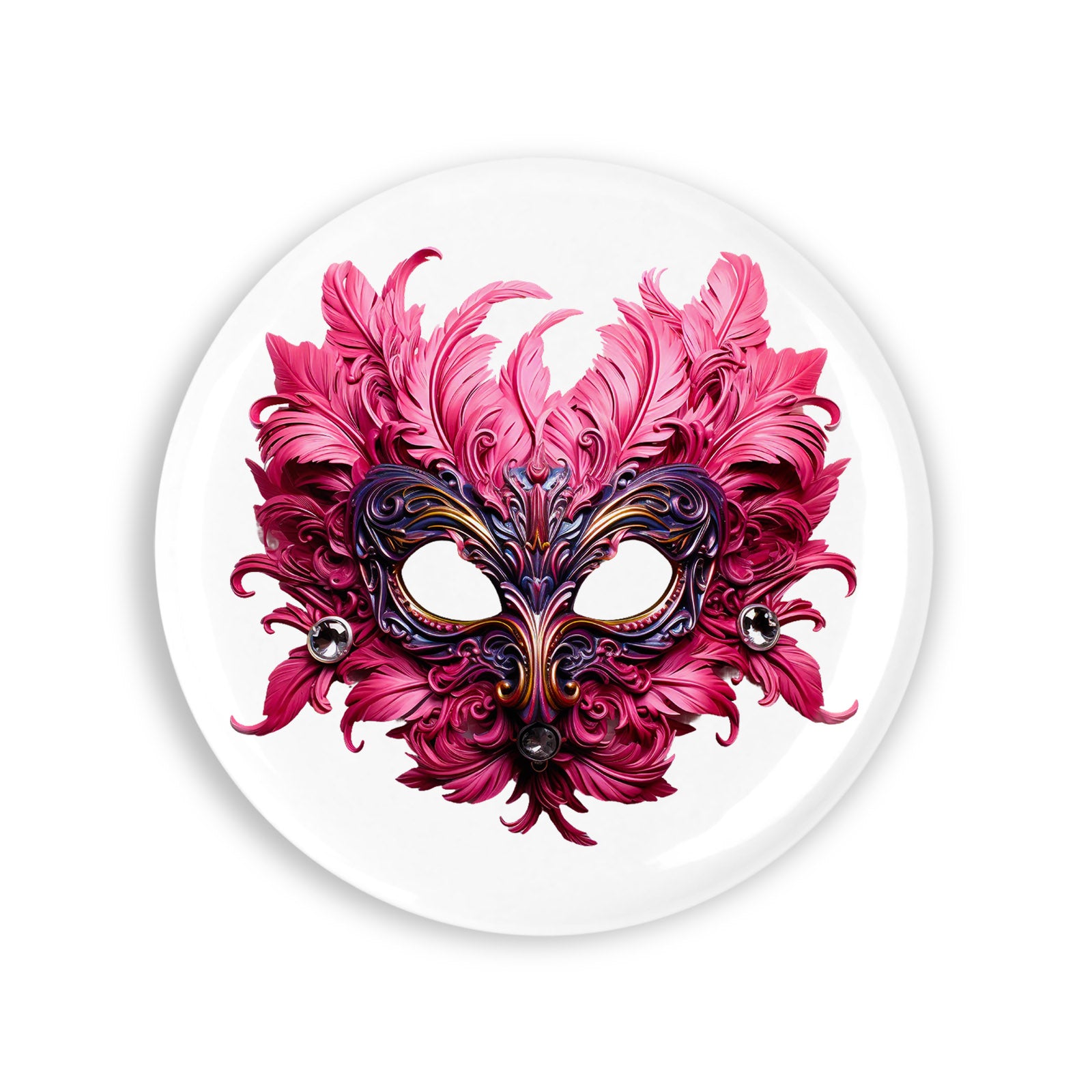 Set 4 insigne, Masca cu pene roz, NO1413, Metal, 44 mm, Multicolor