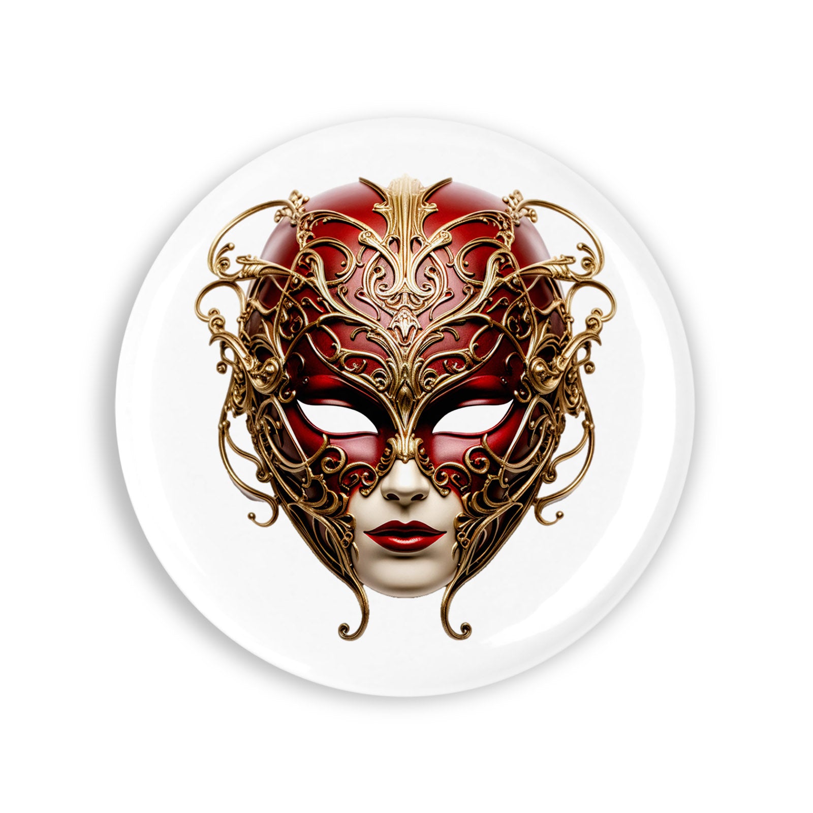 Set 4 insigne, Masca venetiana rosie, NO3763, Metal, 44 mm, Multicolor
