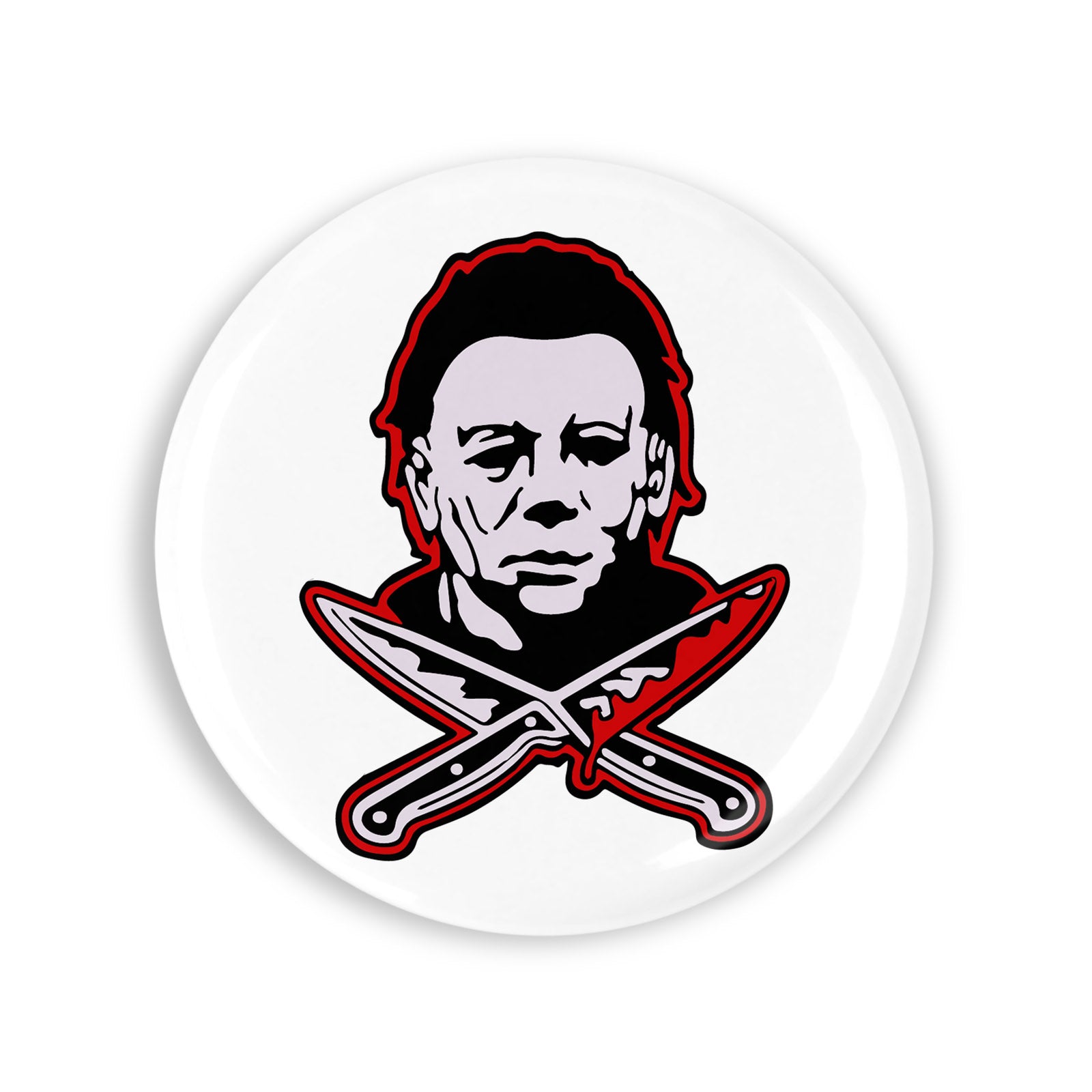 Set 4 insigne, Michael Myers cutitele incrucisate, NO2615, Metal, 44 mm, Multicolor