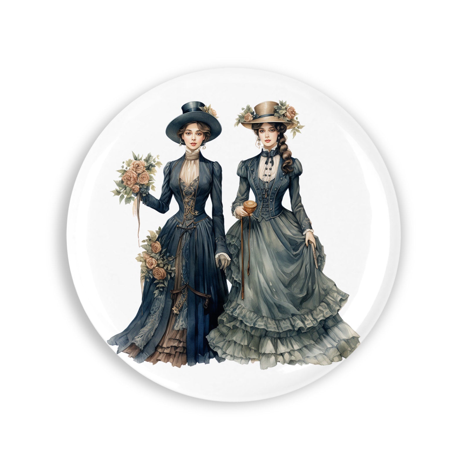 Set 4 insigne, Moda victoriana femei cu rochii Lois si Sober, NO372, Metal, 44 mm, Multicolor