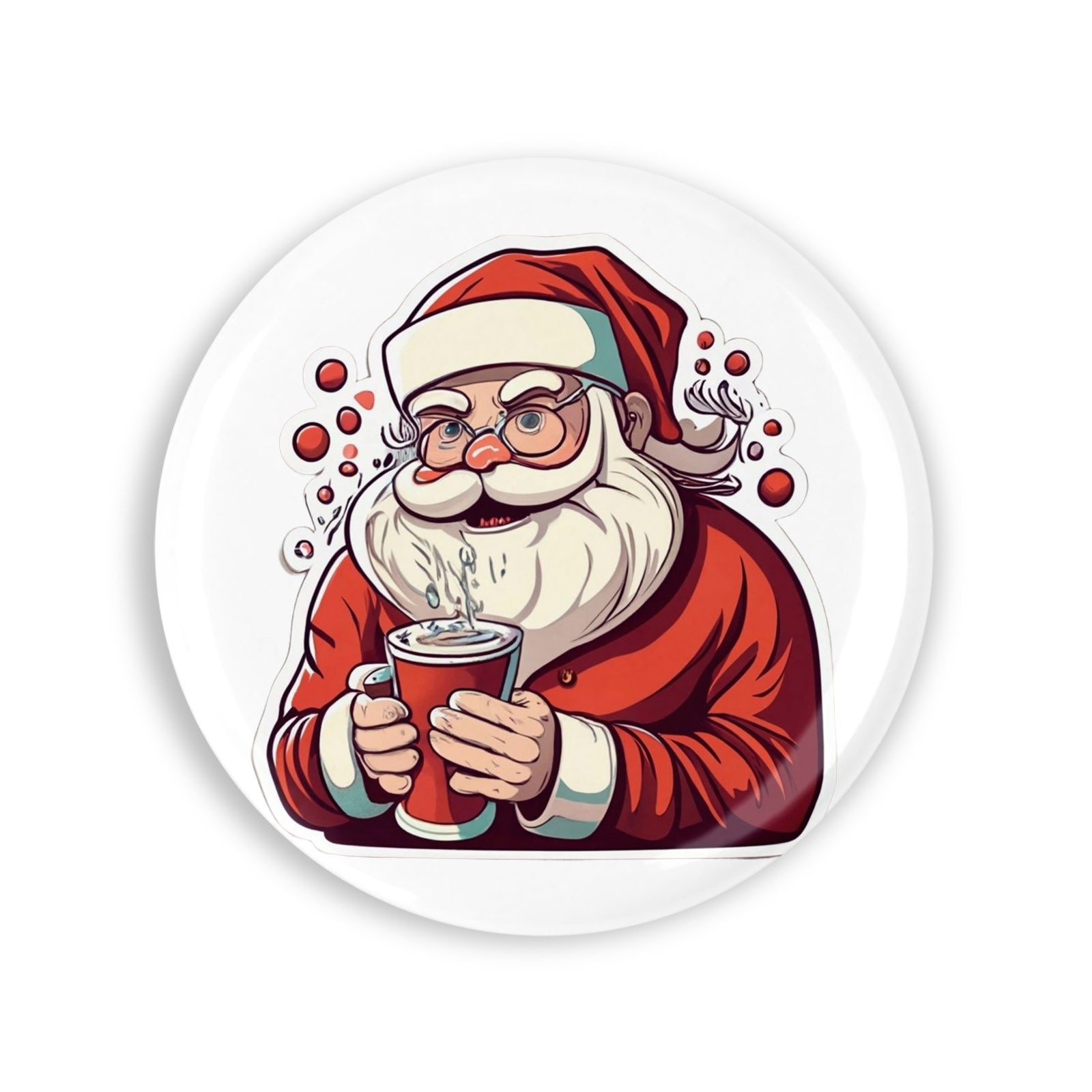 Set 4 insigne, Mos Craciun bea ciocolata calda, NO5257, Metal, 44 mm, Multicolor
