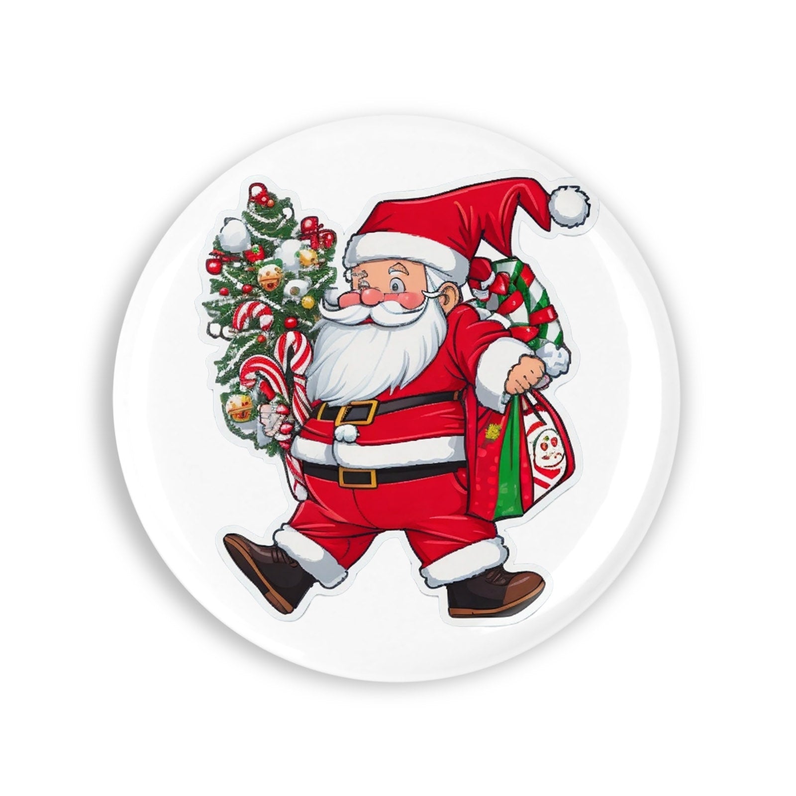 Set 4 insigne, Mos Craciun cu bradul de craciun, NO1513, Metal, 44 mm, Multicolor