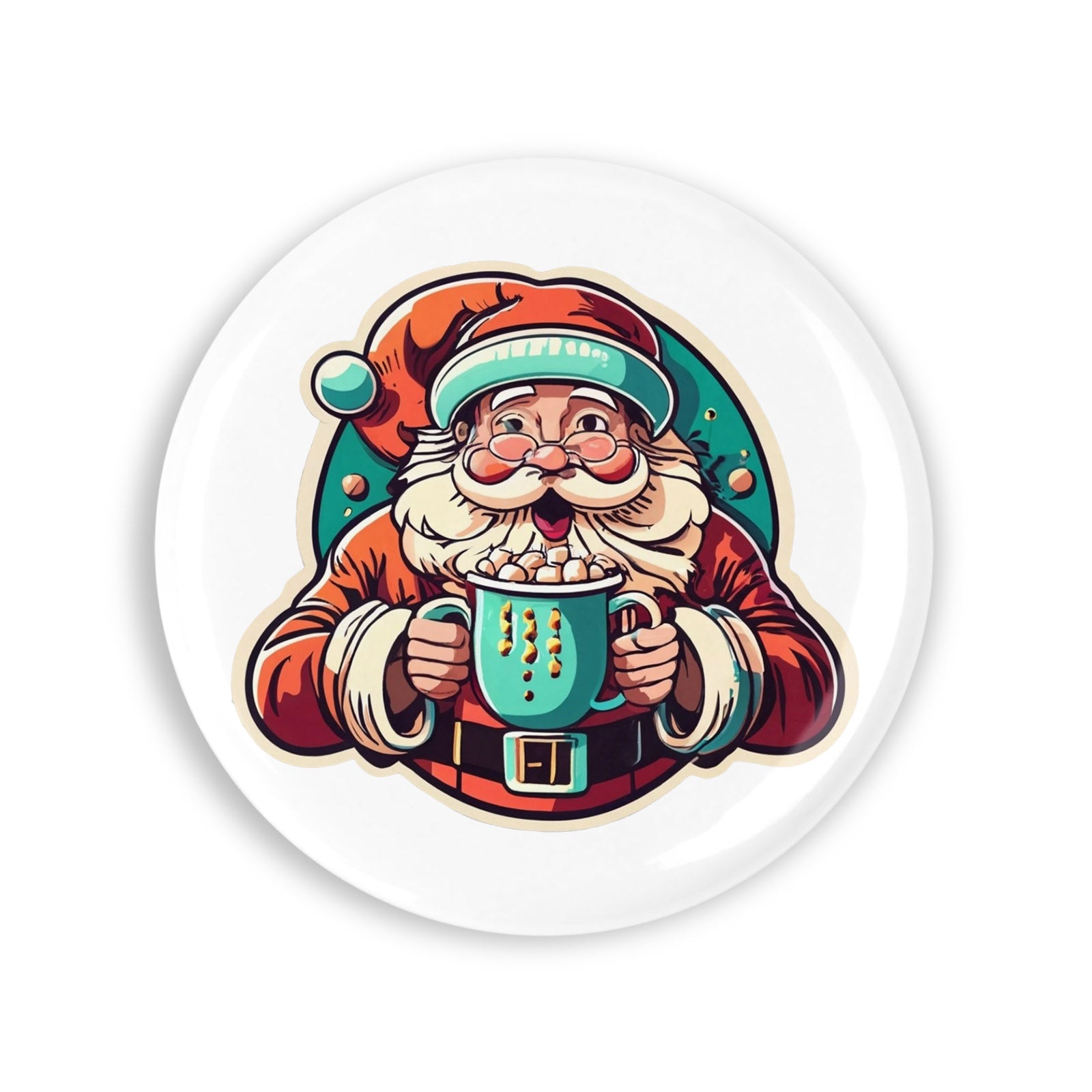 Set 4 insigne, Mos Craciun cu cana cu bomboane, NO4424, Metal, 44 mm, Multicolor