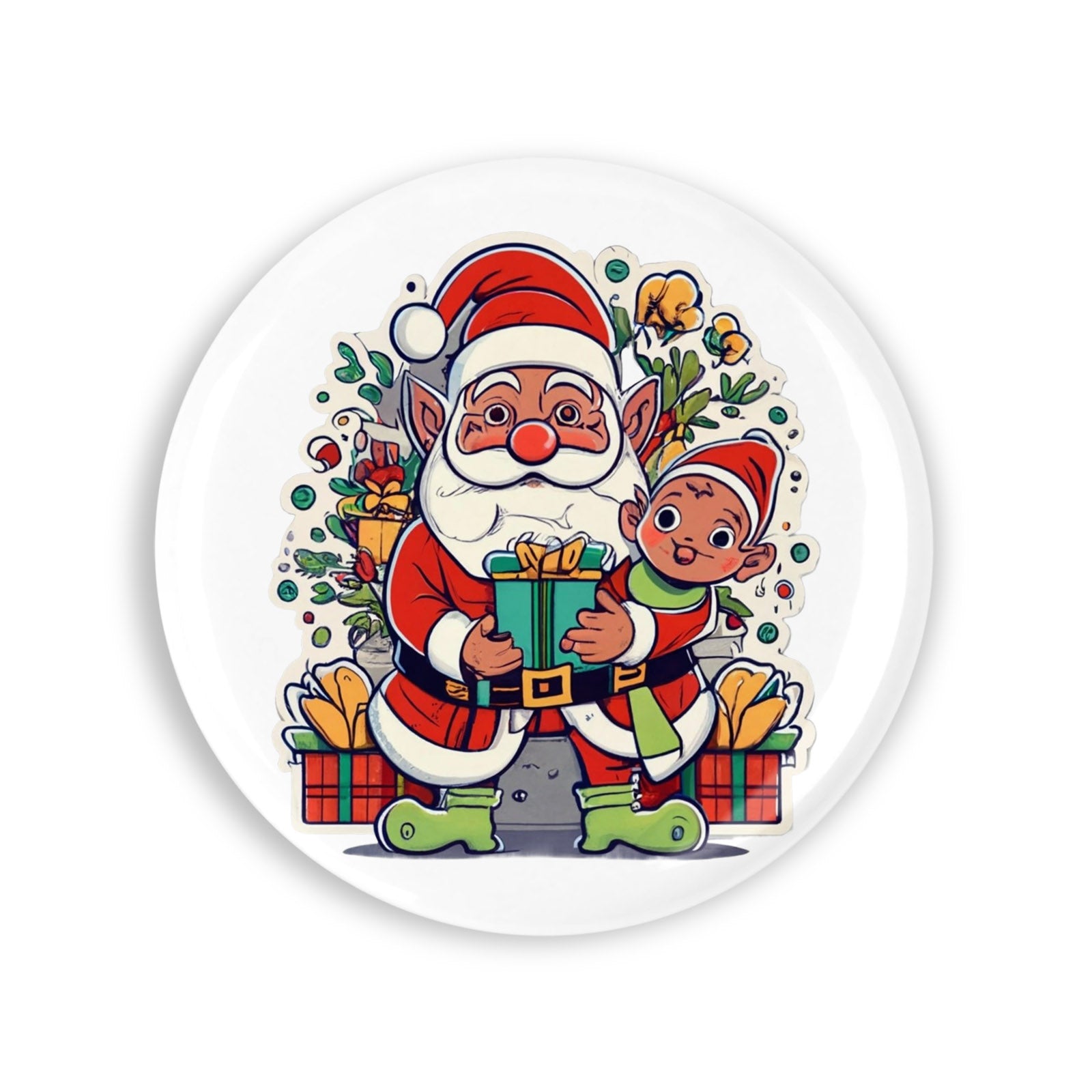 Set 4 insigne, Mos Craciun cu copil in brate, NO4021, Metal, 44 mm, Multicolor
