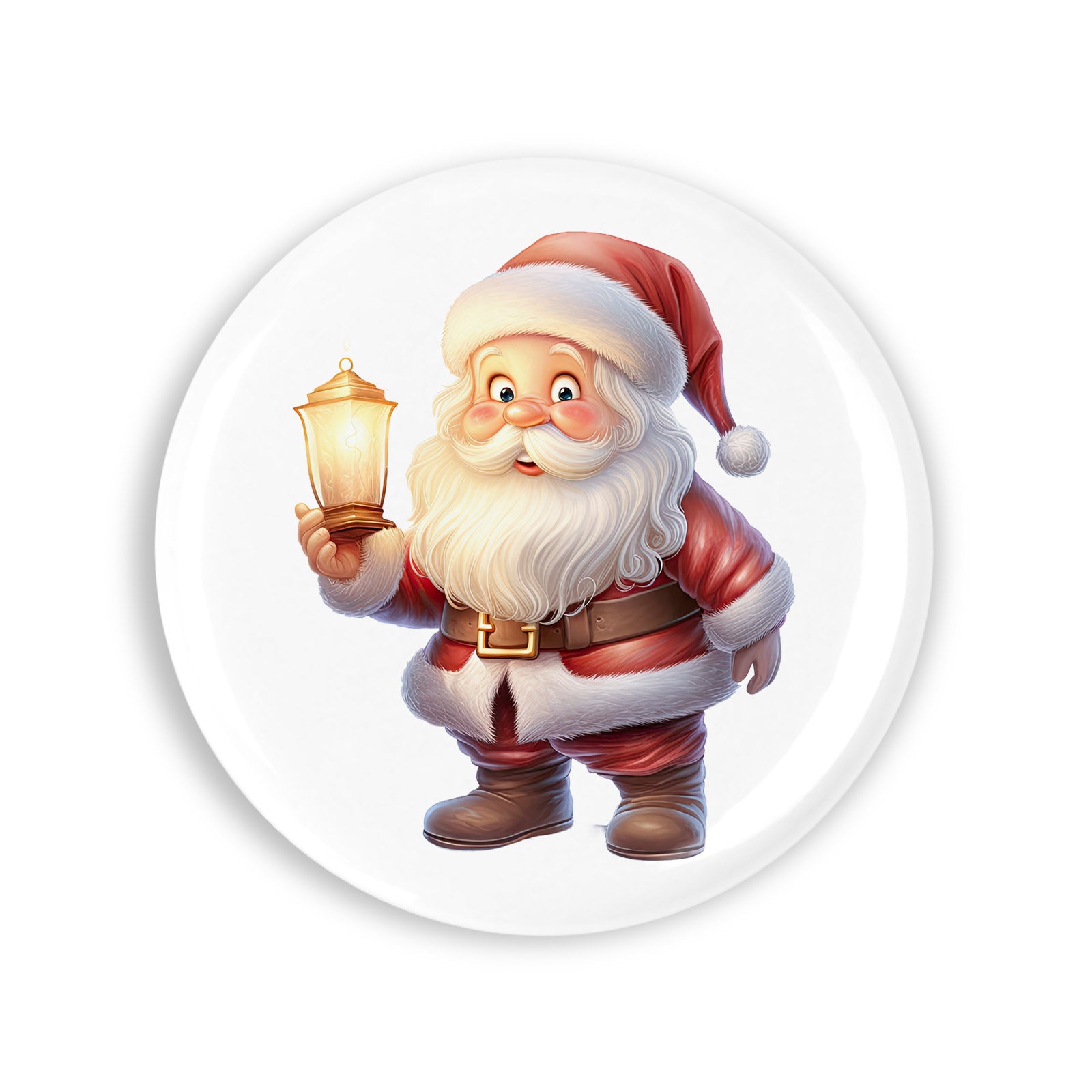 Set 4 insigne, Mos Craciun cu felinar in mana, NO177, Metal, 44 mm, Multicolor