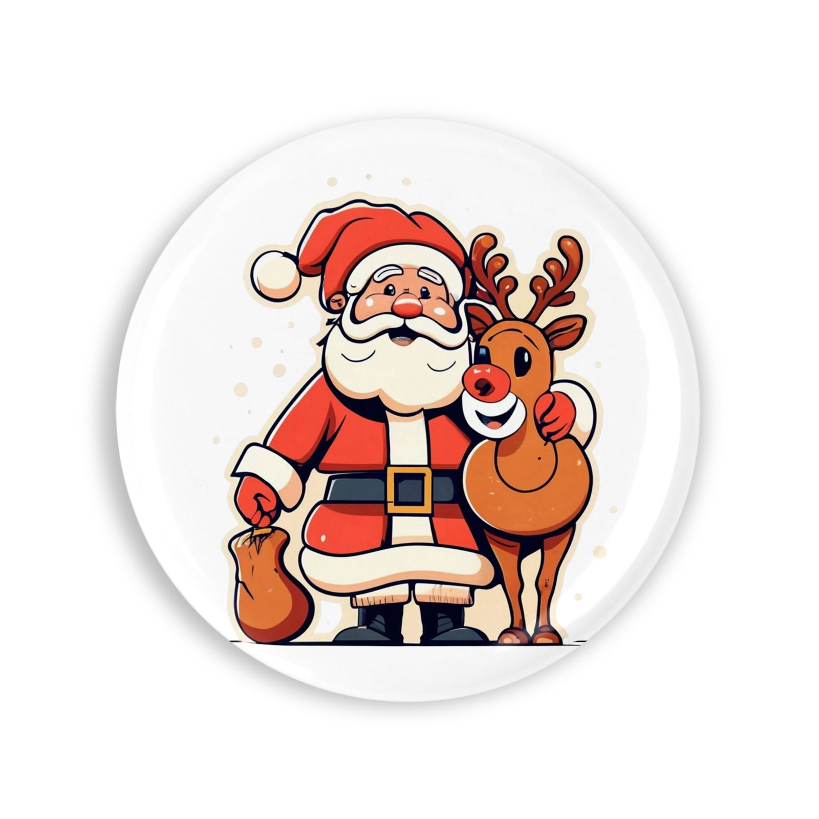 Set 4 insigne, Mos Craciun imbratiseaza renul, NO5708, Metal, 44 mm, Multicolor