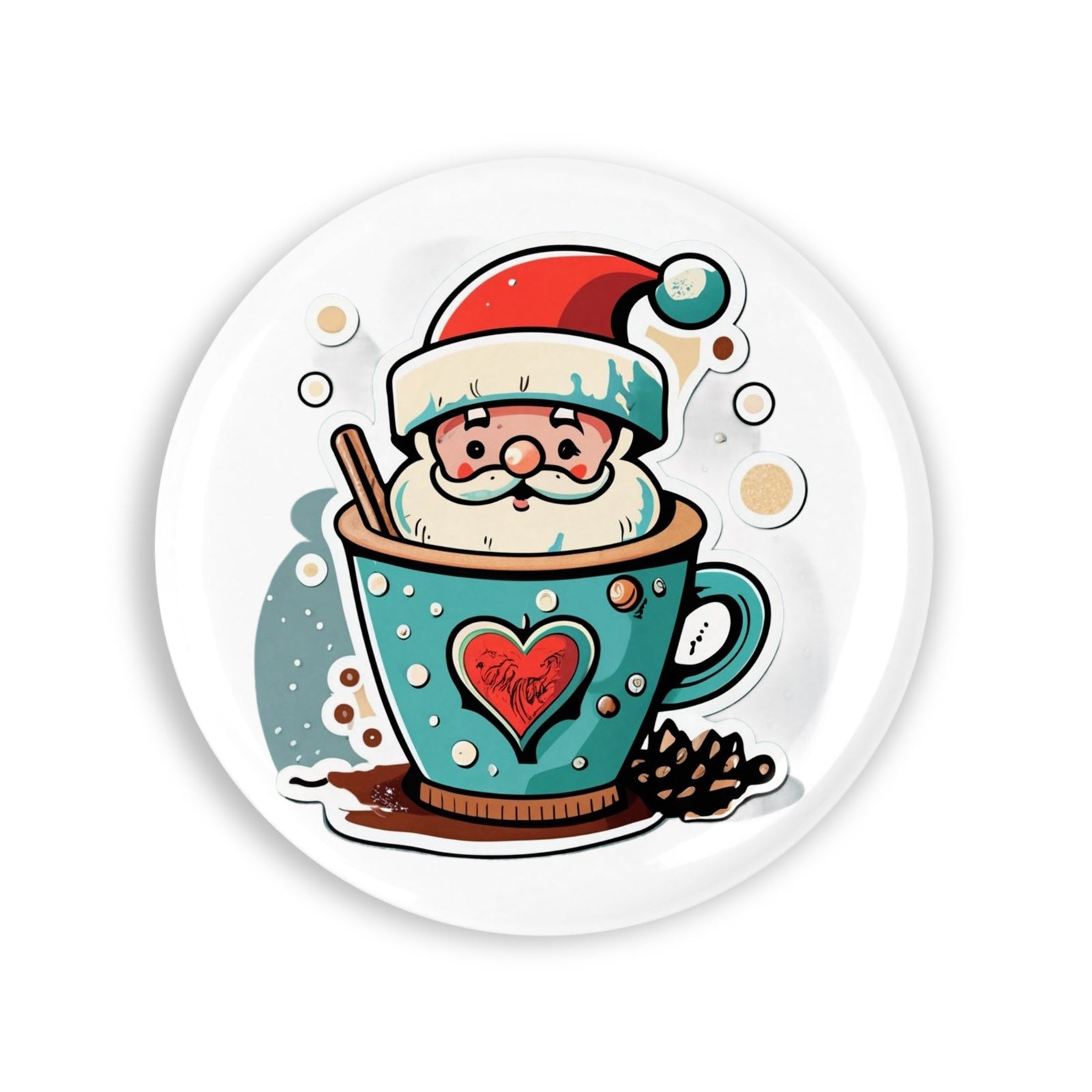 Set 4 insigne, Mos Craciun in ceasca de cafea, NO798, Metal, 44 mm, Multicolor