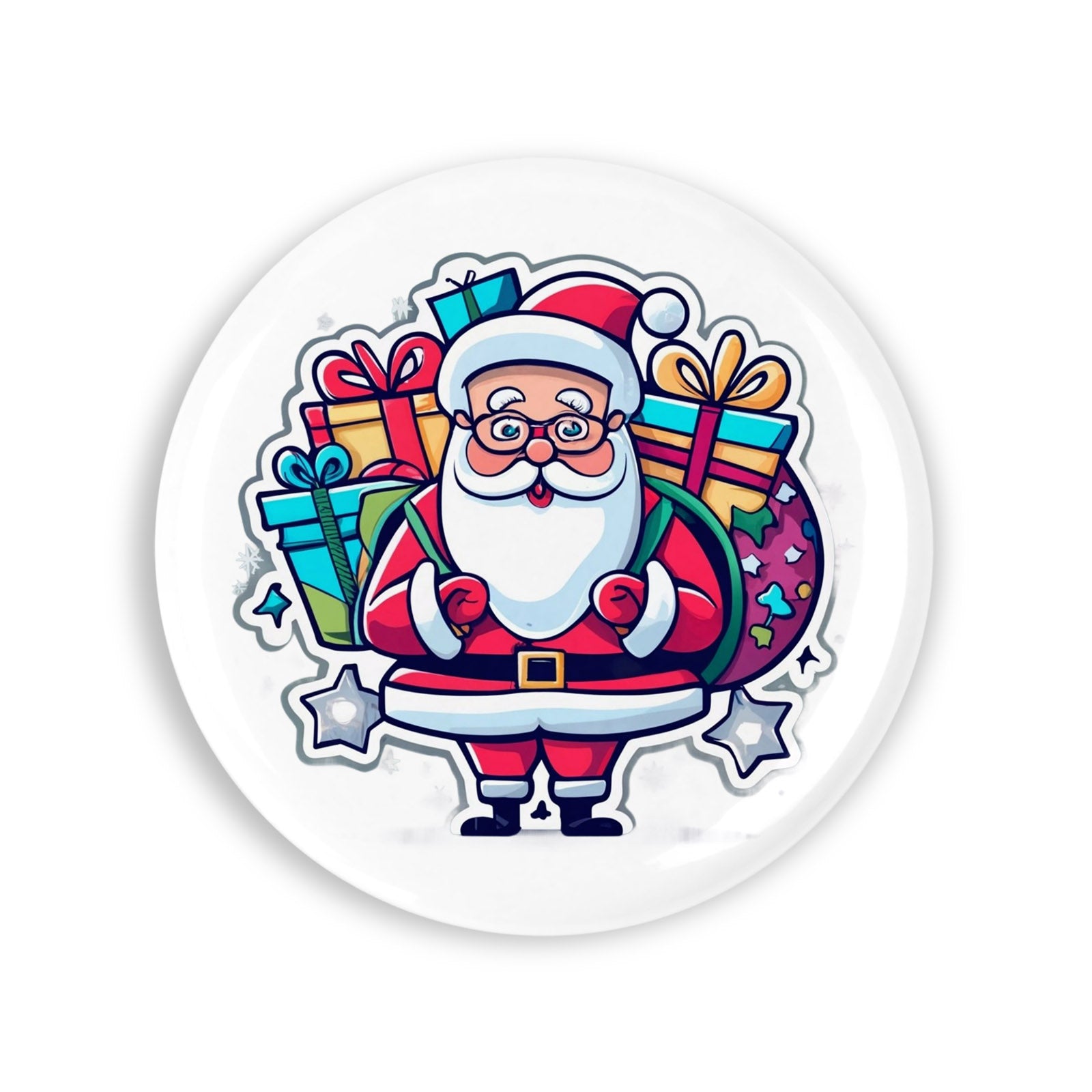 Set 4 insigne, Mos Craciun incarcat cu cadouri, NO3777, Metal, 44 mm, Multicolor