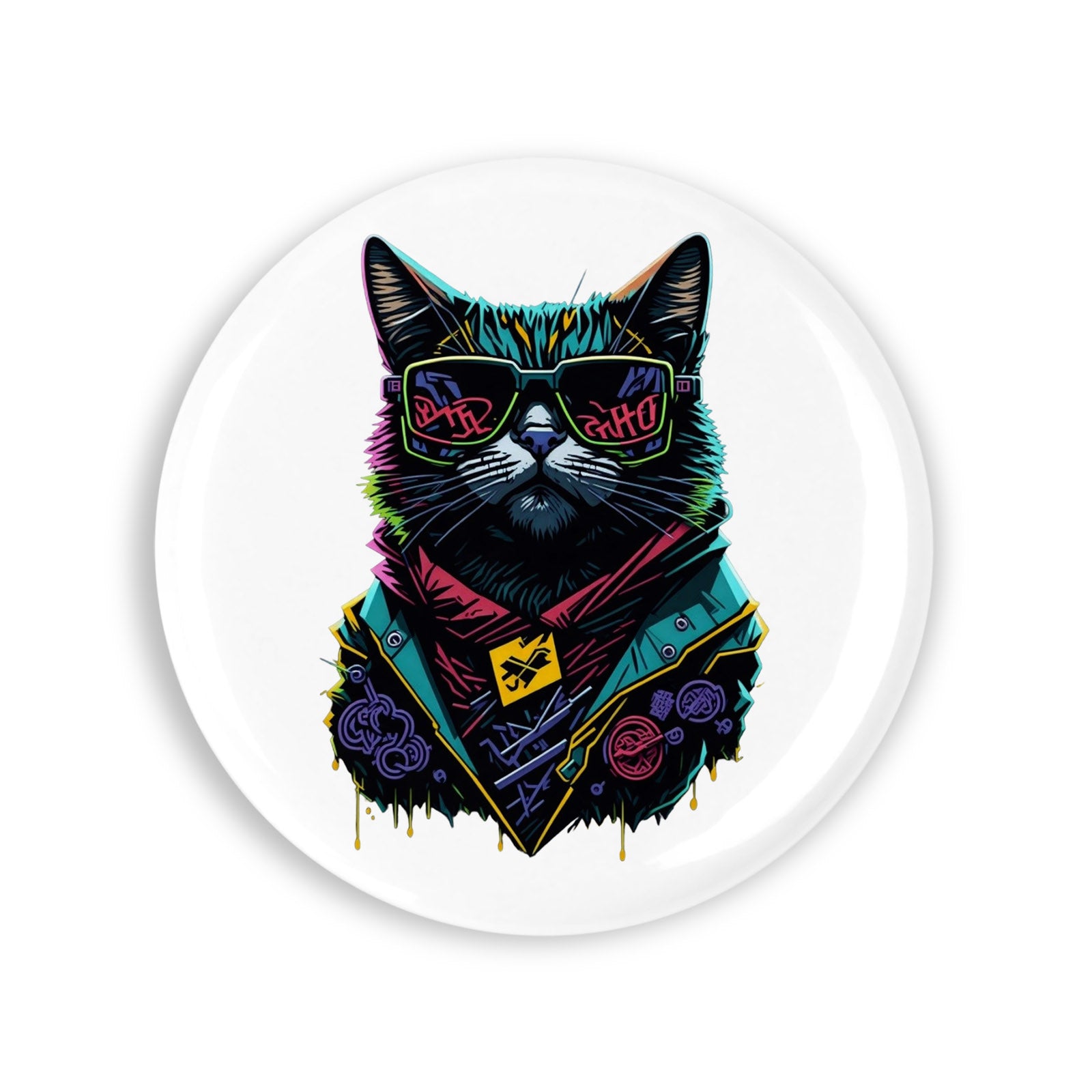 Set 4 insigne, Motanul imbracat, NO7115, Metal, 44 mm, Multicolor