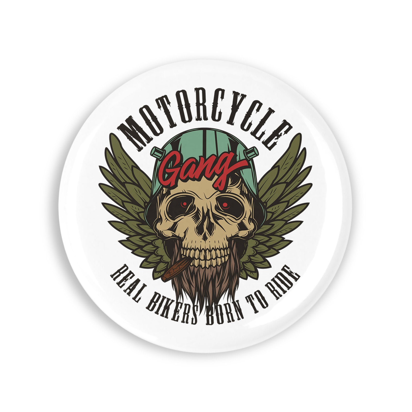 Set 4 insigne, Motorcycle Gang Real bikers born to ride, NO2635, Metal, 44 mm, Multicolor
