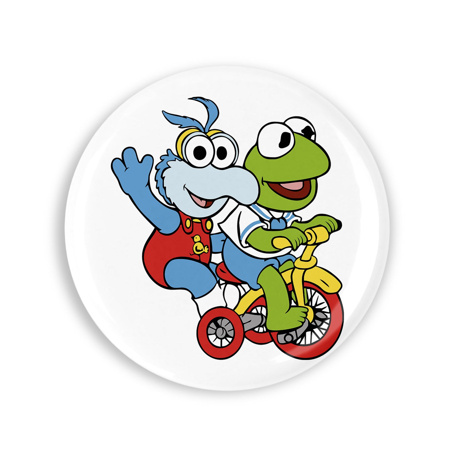 Set 4 insigne, Muppet Piggy si Kermit copii pe bicicleta, NO1113, Metal, 44 mm, Multicolor