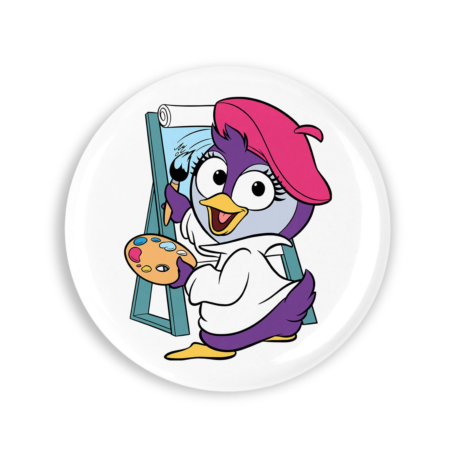 Set 4 insigne, Muppet Pinguinul mov picteaza, NO4028, Metal, 44 mm, Multicolor