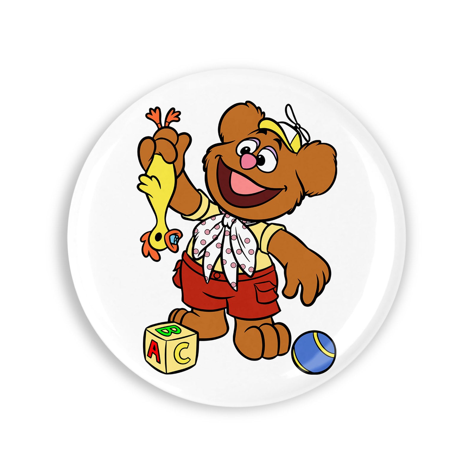Set 4 insigne, Muppet ursul Fozzie cu gaina in mana, NO670, Metal, 44 mm, Multicolor